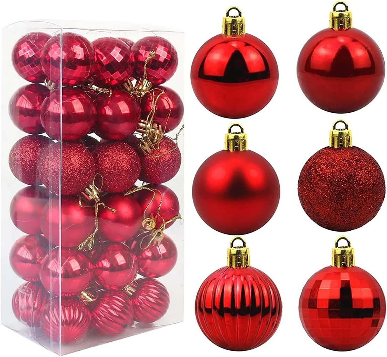 Große Menge: Enthält 36 Weihnachtskugeln in 6 einzigartigen Designs (jeweils 6 Stück), mit matten, glänzenden und gestreiften Oberflächen. Perfekt für vielseitige Dekorationen, die zu jedem Weihnachtsbaum oder Festtagsaufbau passen.