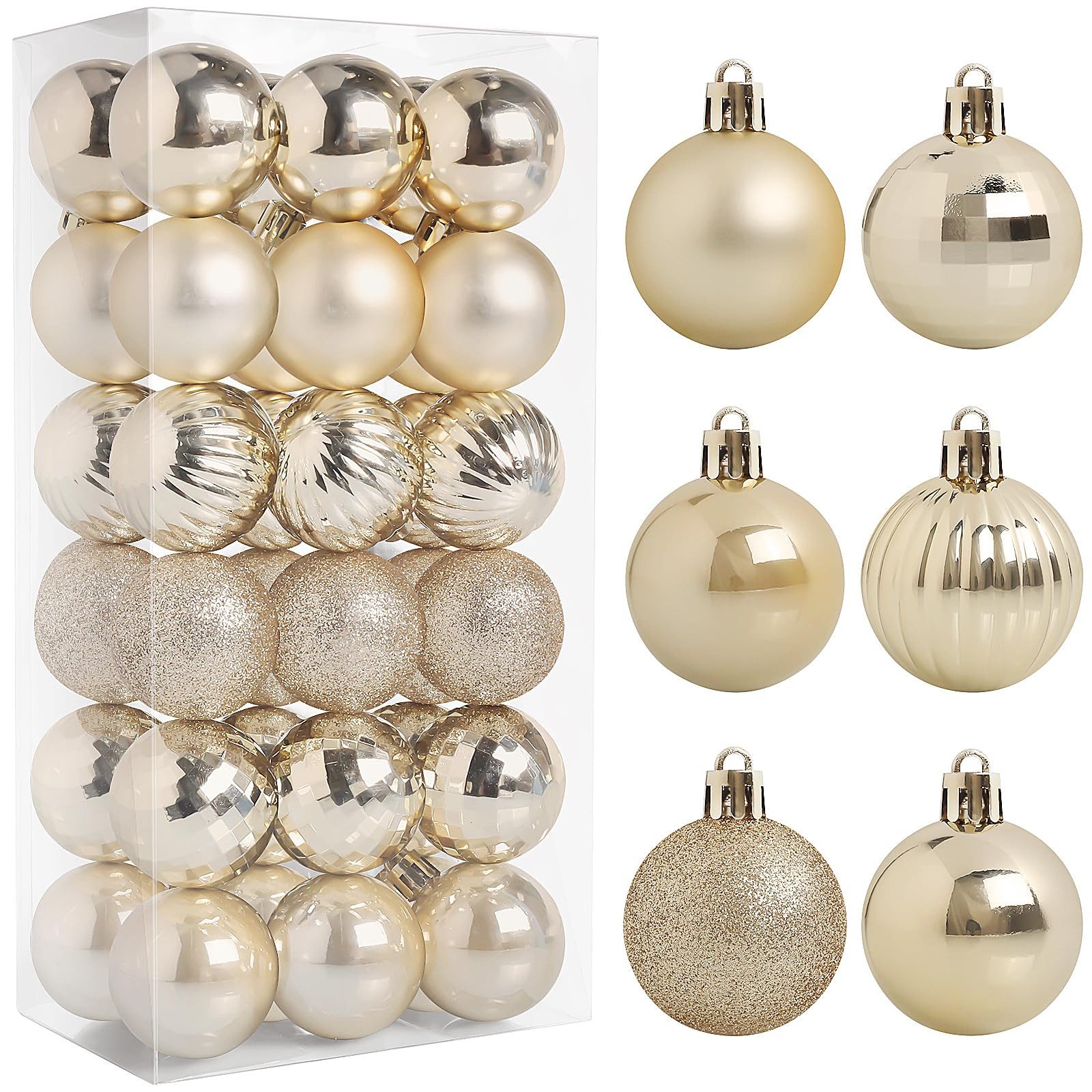 Einfache Aufhängung: Jede Weihnachtsbaumkugel ist mit einem Haken für eine schnelle Installation ausgestattet. Wird mit einer Aufbewahrungsbox geliefert, um die Weihnachtskugeln nach den Feiertagen ordentlich und schadensfrei zu verstauen und Platz für die Nutzung im nächsten Jahr zu sparen.