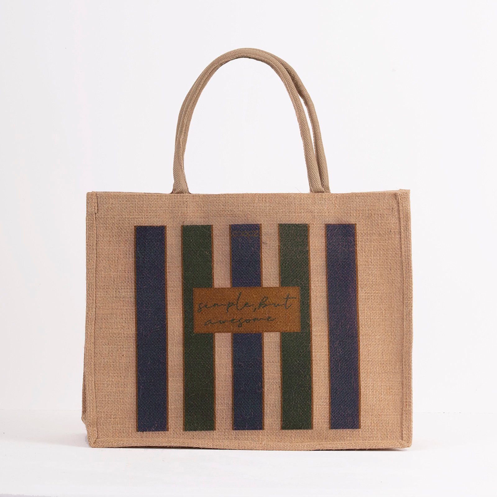 Aus 100% Jute, beschichtet von innen, geräumig, starke Griffe und cooles Design.
