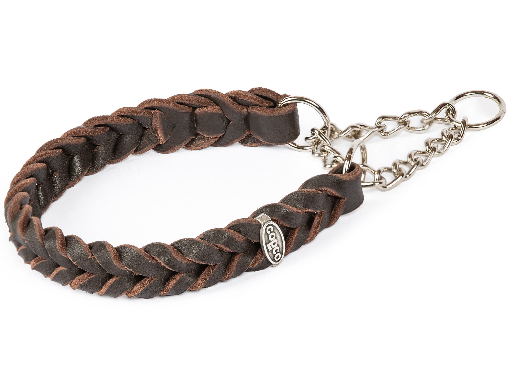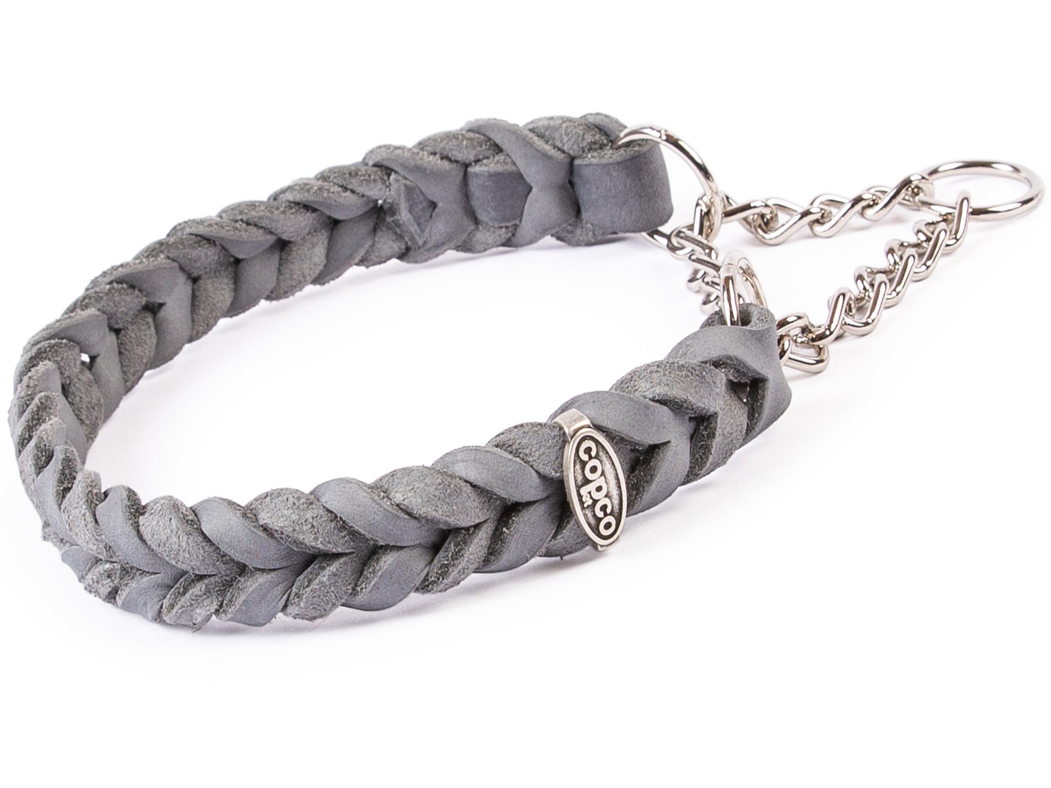 CopcoPet - Fettleder Halsband geflochten mit verchromter Zugstopp-Kette. Das CopcoPet Fettleder Zughalsband, wird aus hochwertigem Rindsleder (tiefen- und heißgefettet) mit aufwendiger Handarbeit in Deutschland geflochten. Es hat eine verchromte Zugstopp-Kette. Dieses ermöglicht das schnelle Anlegen des Halsbandes. Mit diesem Halsband haben sie Ihren Hund sicher unter Kontrolle. Gleichzeitig wird durch zwei angebrachte Ringe verhindert, dass das Halsband zu fest zugezogen wird. Wir bieten Ihnen dieses Modell in unterschiedlichen Größen und drei verschiedenen Farben an.