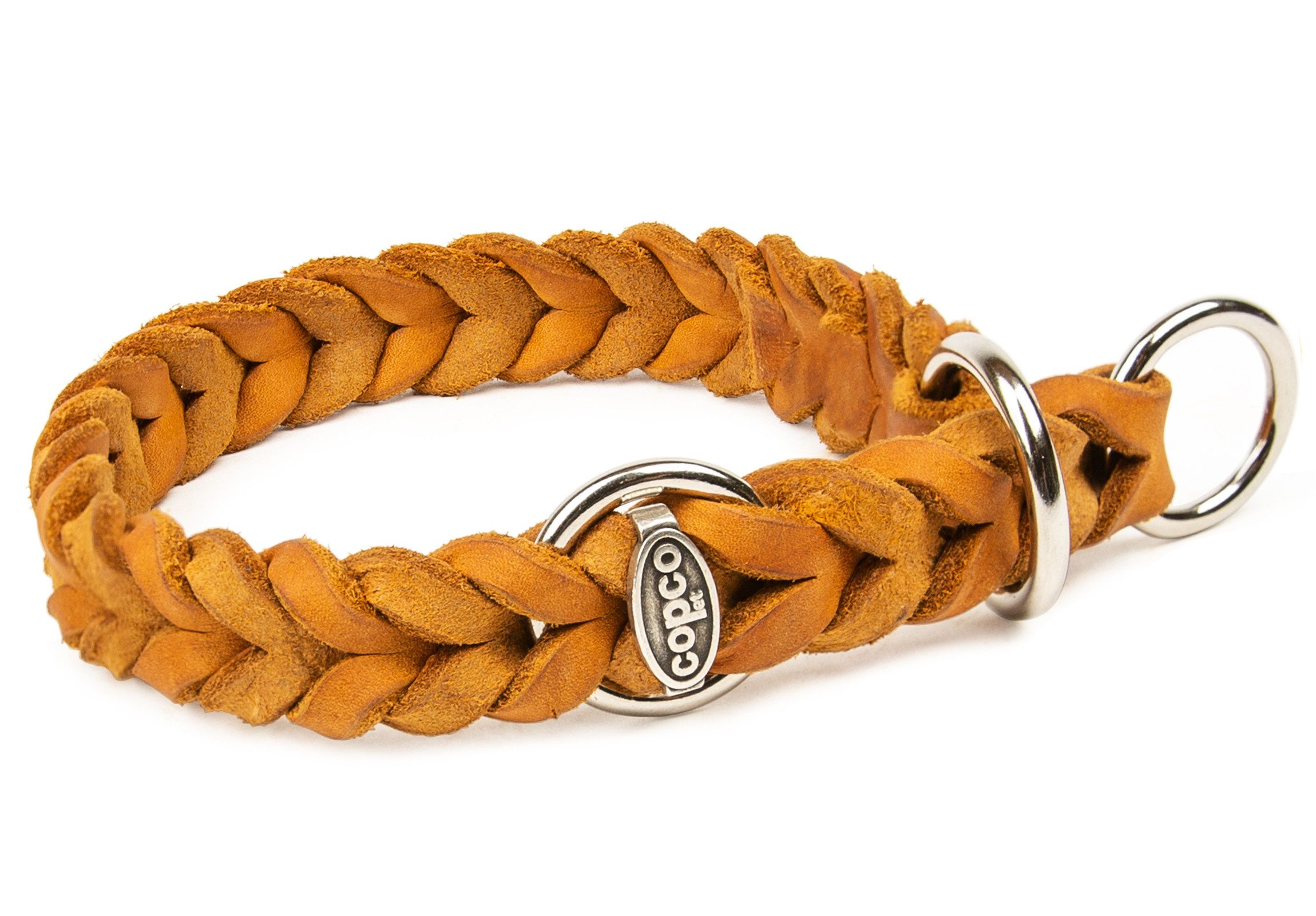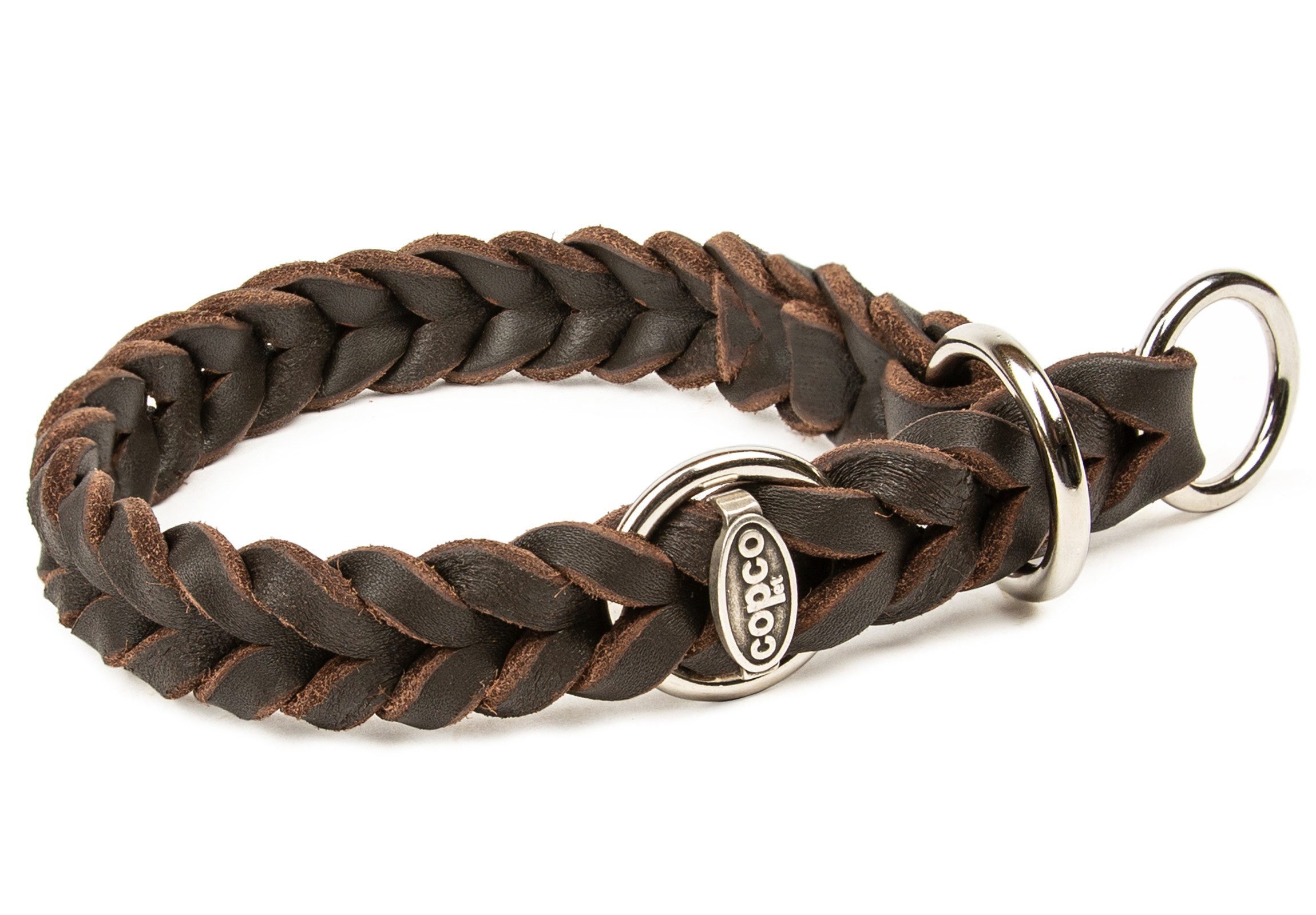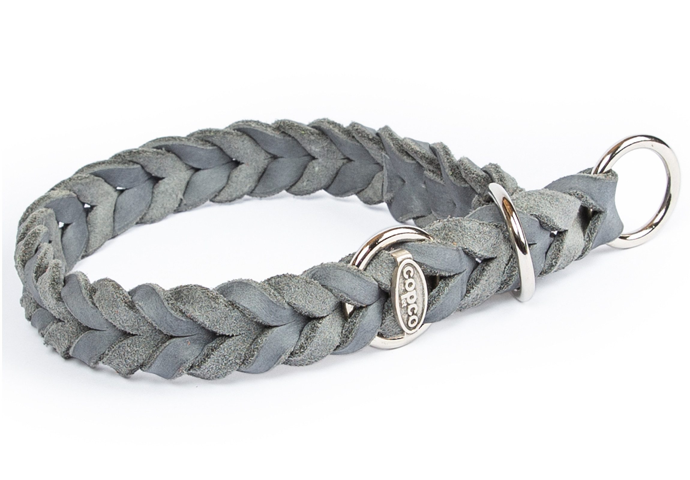 Fettleder Halsband geflochten mit Zugstopp-Ring. Das Halsband mit Zugstop wird komplett aus einem einzigen, durchgehenden Stück Fettleder geflochten. Der CopcoPet-Fettleder-Würger mit Zugbegrenzung wird aus hochwertigem Rindsleder (tiefen- und heißgefettet) mit aufwendiger Handarbeit in Deutschland geflochten. Wir bieten Ihnen dieses Modell in unterschiedlichen Größen und drei verschiedenen Farben an. Da dieses Produkt in unserer eigenen Werkstatt produziert wird, besteht die Möglichkeit gegen einen geringen Aufpreis einer individuellen Anfertigung.