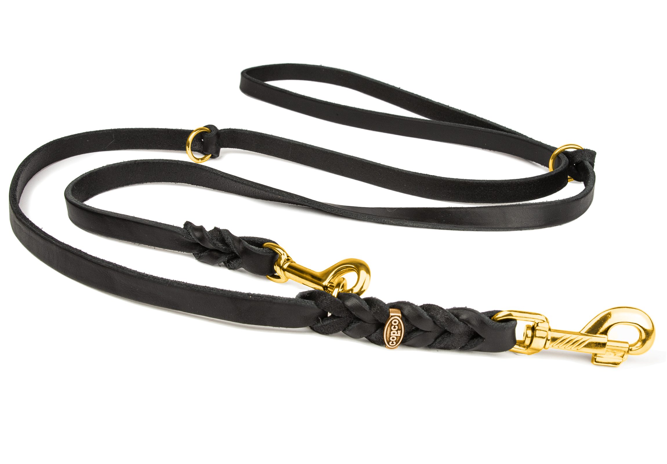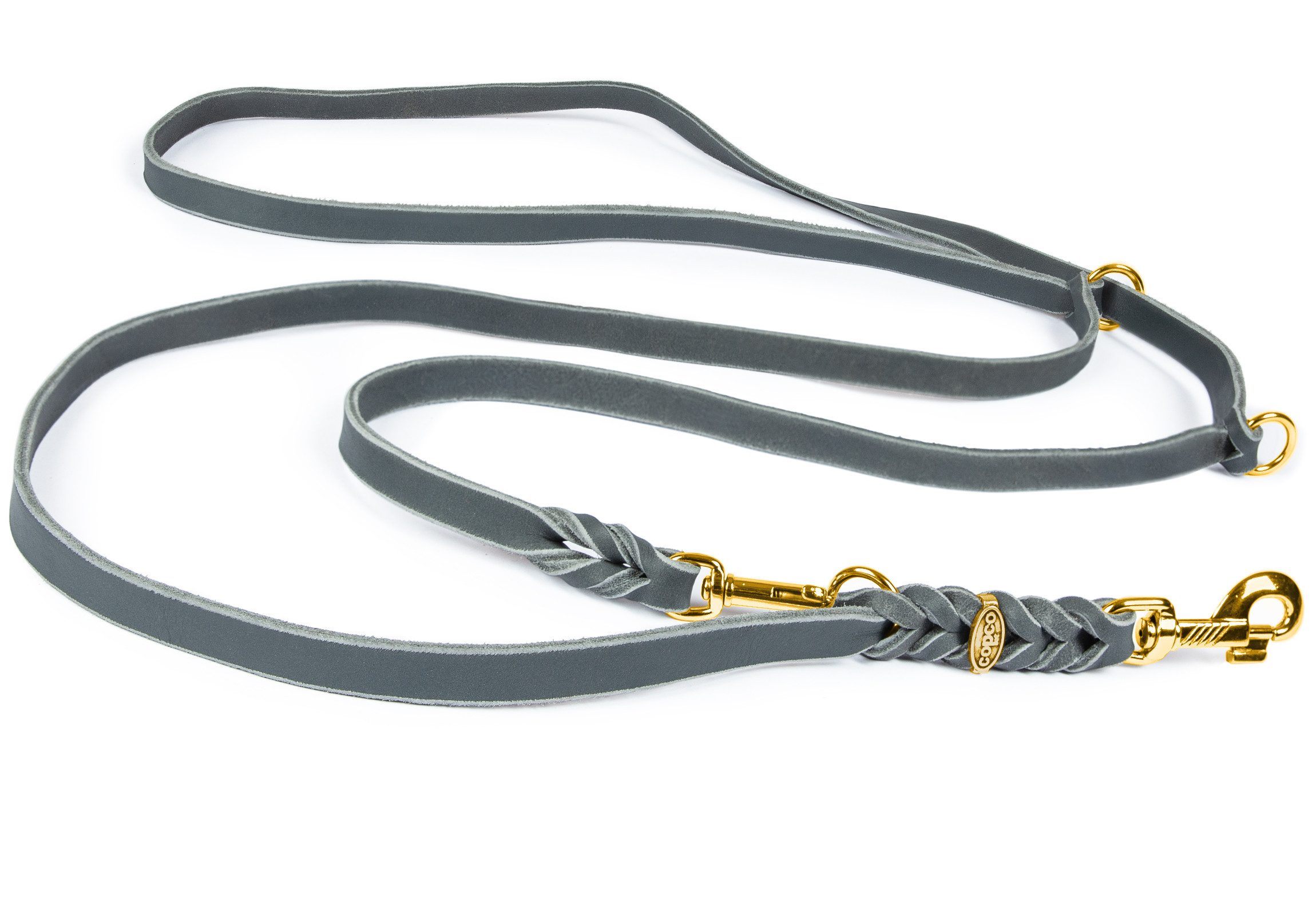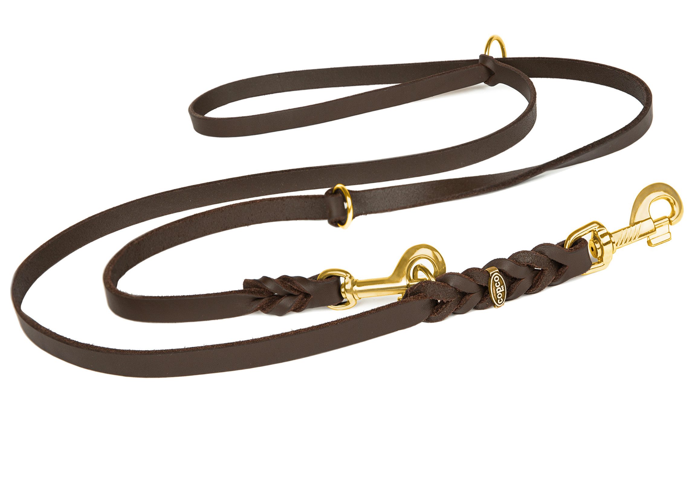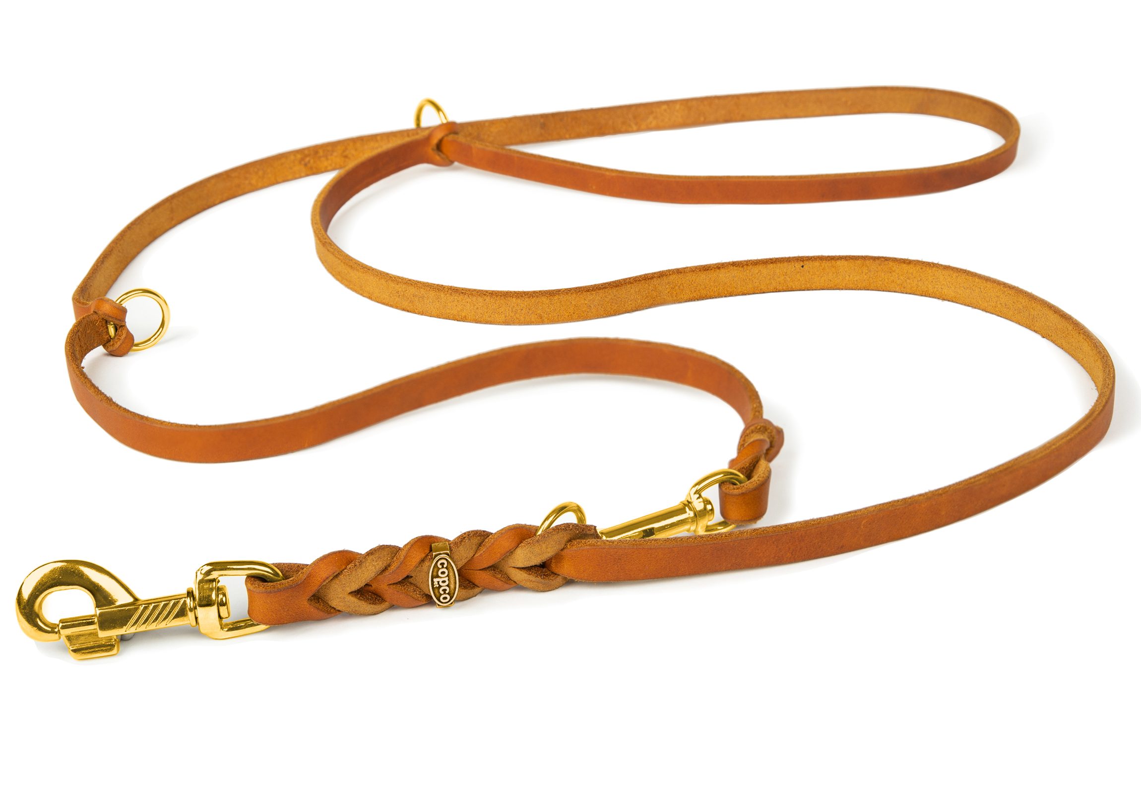 Die CopcoPet Hundeleine aus hochwertigem robusten Fettleder geflochten und 3-fach verstellbar. An dieser Führleine befinden sich drei Ringe, die das Verstellen der Leine ermöglichen. Sie kann somit halbiert als Umhängeleine oder Leine mit Handschlaufe genutzt werden. Die Beschläge sind verchromt und die passende Размер der Beschläge für jede Lederbreite wird in die Leine eingeflochten. Die Langlebigkeit kann mit wenig Pflegeaufwand durch Nachfetten verlängert werden.