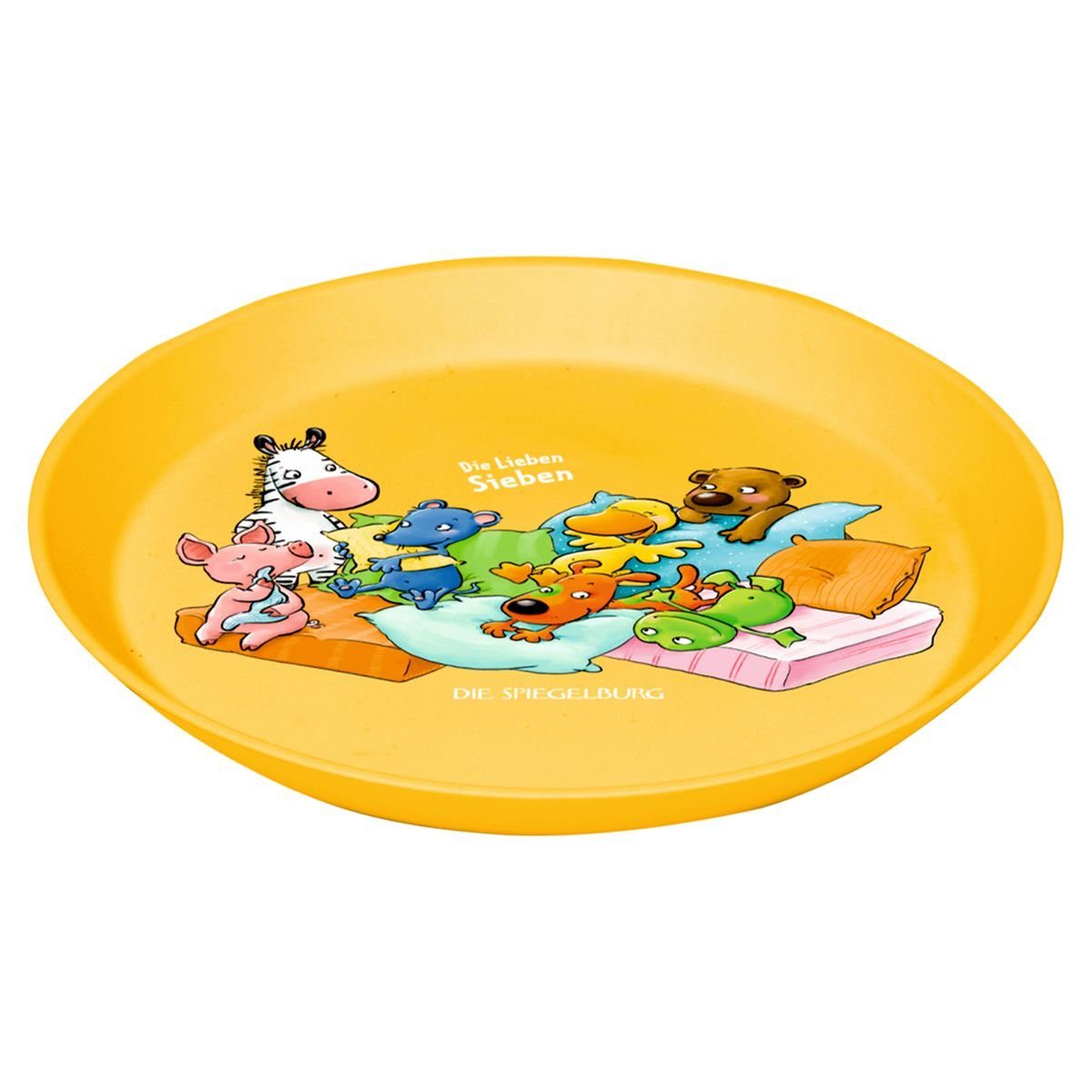 Bunt bedruckter Teller mit den Lieben Sieben. Dieser Teller wurde aus bruchsicherem PP-Material in Deutschland hergestellt.