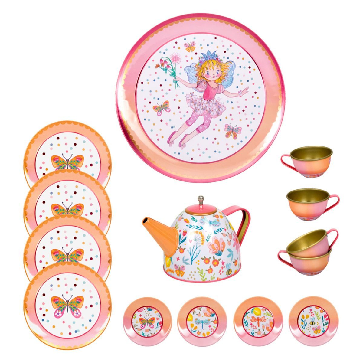 Mit 4 Tellern und 4 Tassen sowie einer Kanne mit Deckel ist der Tisch für Freunde, Kuscheltiere und alle anderen Gäste perfekt gedeckt.