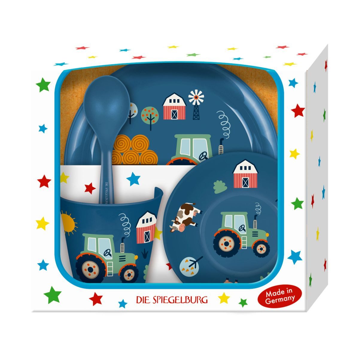 Tolles 4-teiliges Geschirrset ist aus hochwertigem Kunststoff mit coolen Trecker-Motiven.