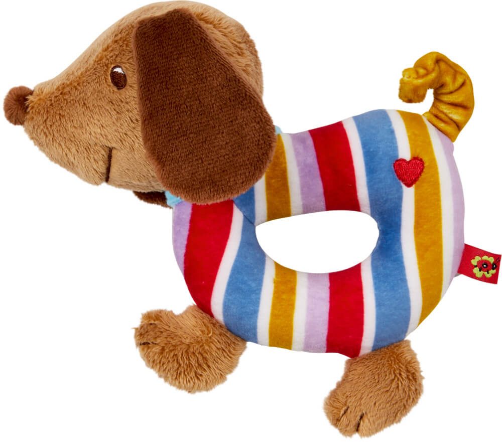 Die kuschelweiche Ringrassel im trendigen Dackel-Design ist das absolute Must-Have für Spieldecke, Wickeltisch und Kindersitz. Der sanfte Klang der Rassel weckt Babys Neugier und lädt zu ersten Greifversuchen ein. Das besondere Design mit liebevoller Stickerei verzaubert dabei Groß und Klein. Egal ob zur Geburt, zur Taufe oder zum ersten Geburtstag: für (werdende) Eltern, Großeltern und Freunde, die auf der Suche nach einer langlebigen Geschenkidee sind, ist BabyGlück die perfekte Wahl. Handwäsche empfohlen.