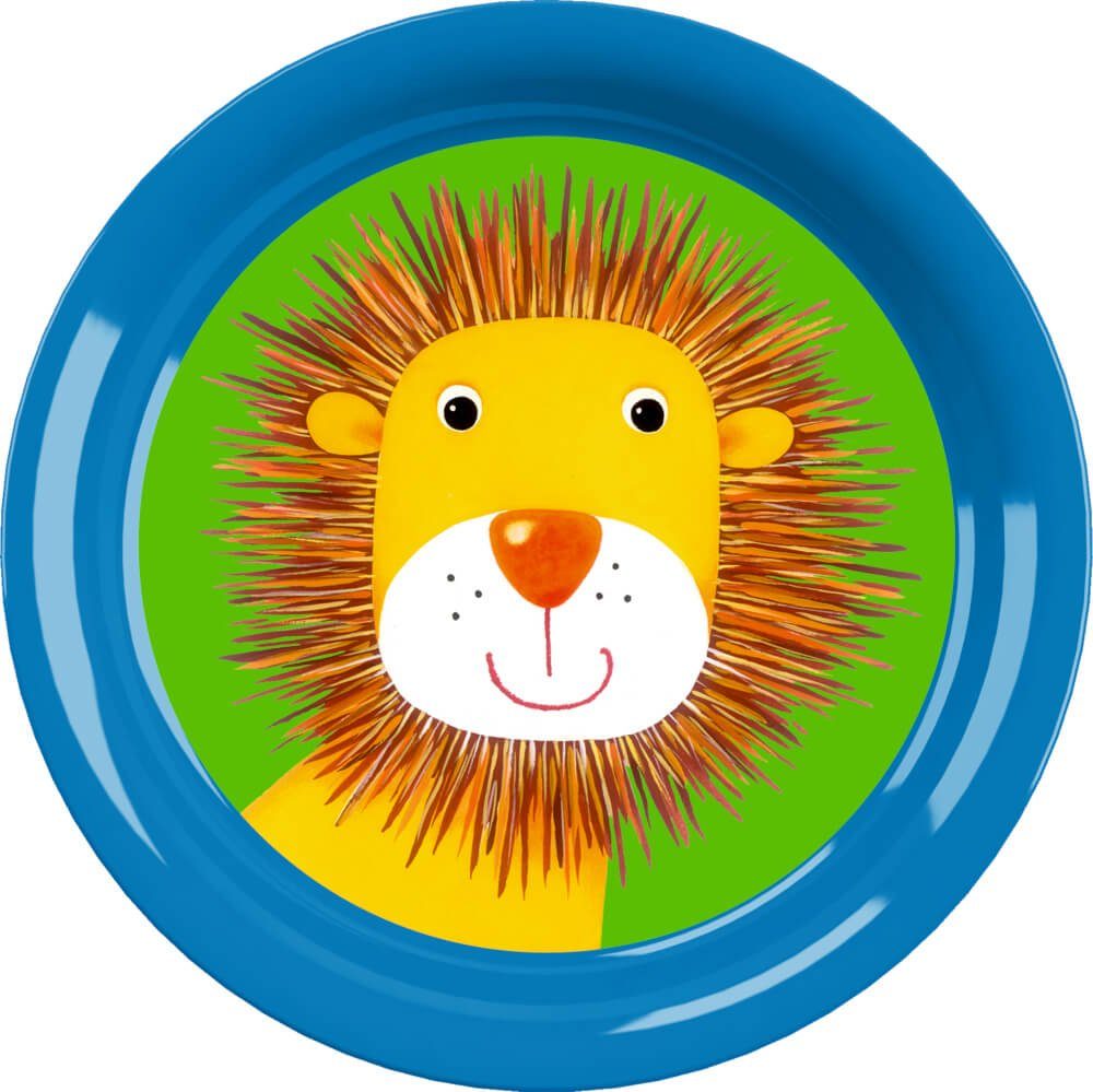 Freche Rasselbande Teller Löwe: Kindgerechtes Design in blau und grün. Der Teller hat einen Durchmesser von 18,5 cm groß und besteht aus Kunststoff (BPA frei).