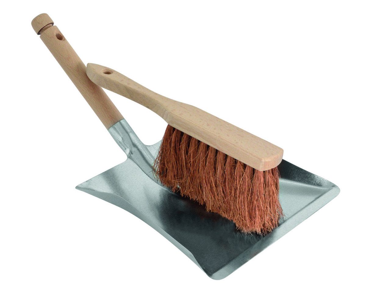 Material: Metallkehrschaufel verzinkt, mit Holzgriff, Holzhandfeger mit Kokosbesteckung
