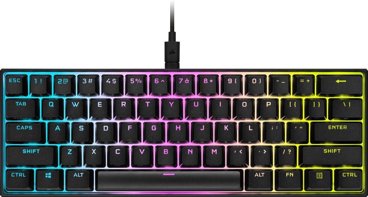 Lieferumfang | CORSAIR Logo Keycap Garantiekarte Keycap-Puller Kurzanleitung Sicherheitsbroschüre Strahlende Leertaste USB Typ-C-zu-Typ-A-Kabe |