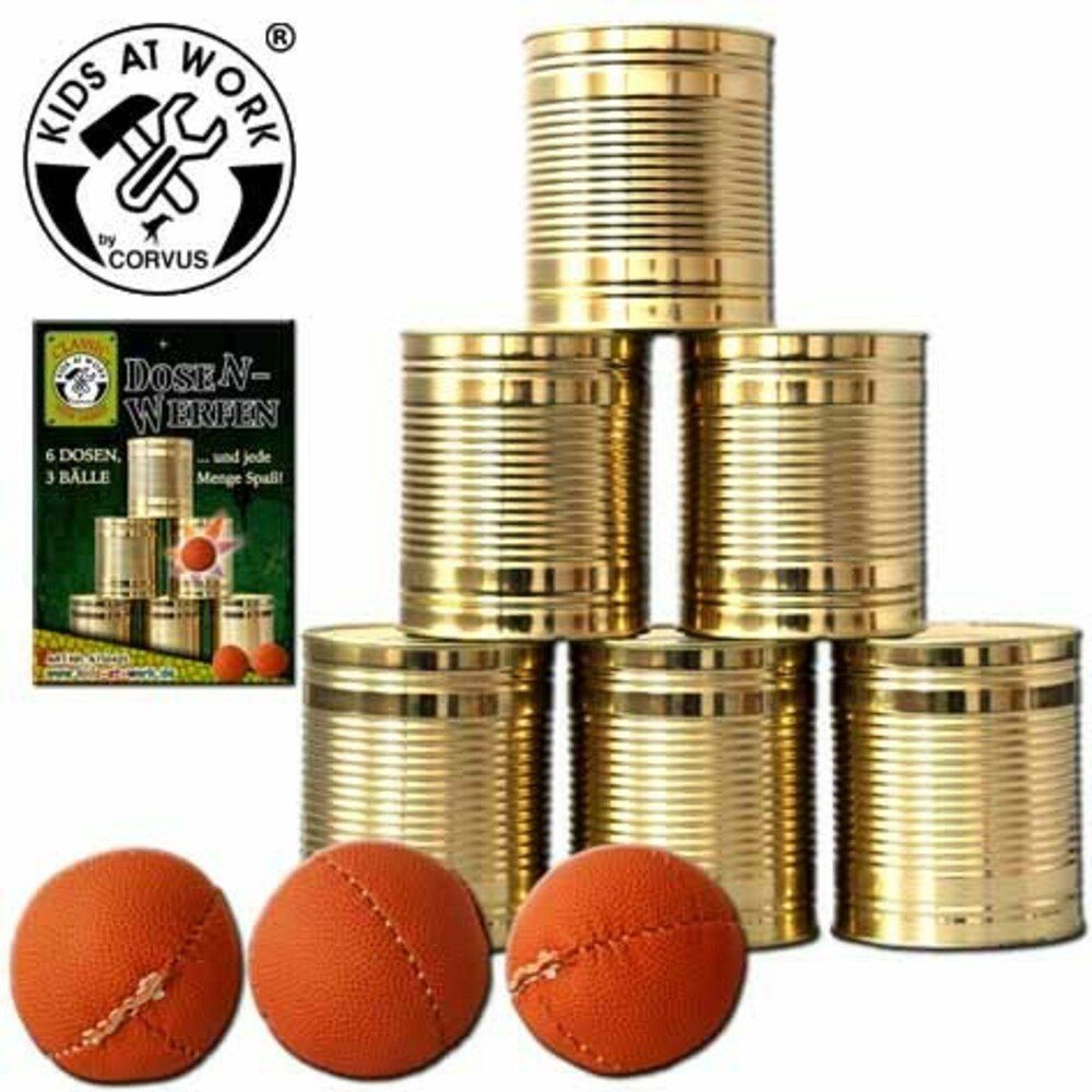 Dosenwerfen mit 6 großen Dosen und 3 großen Bällen (8 cm)
