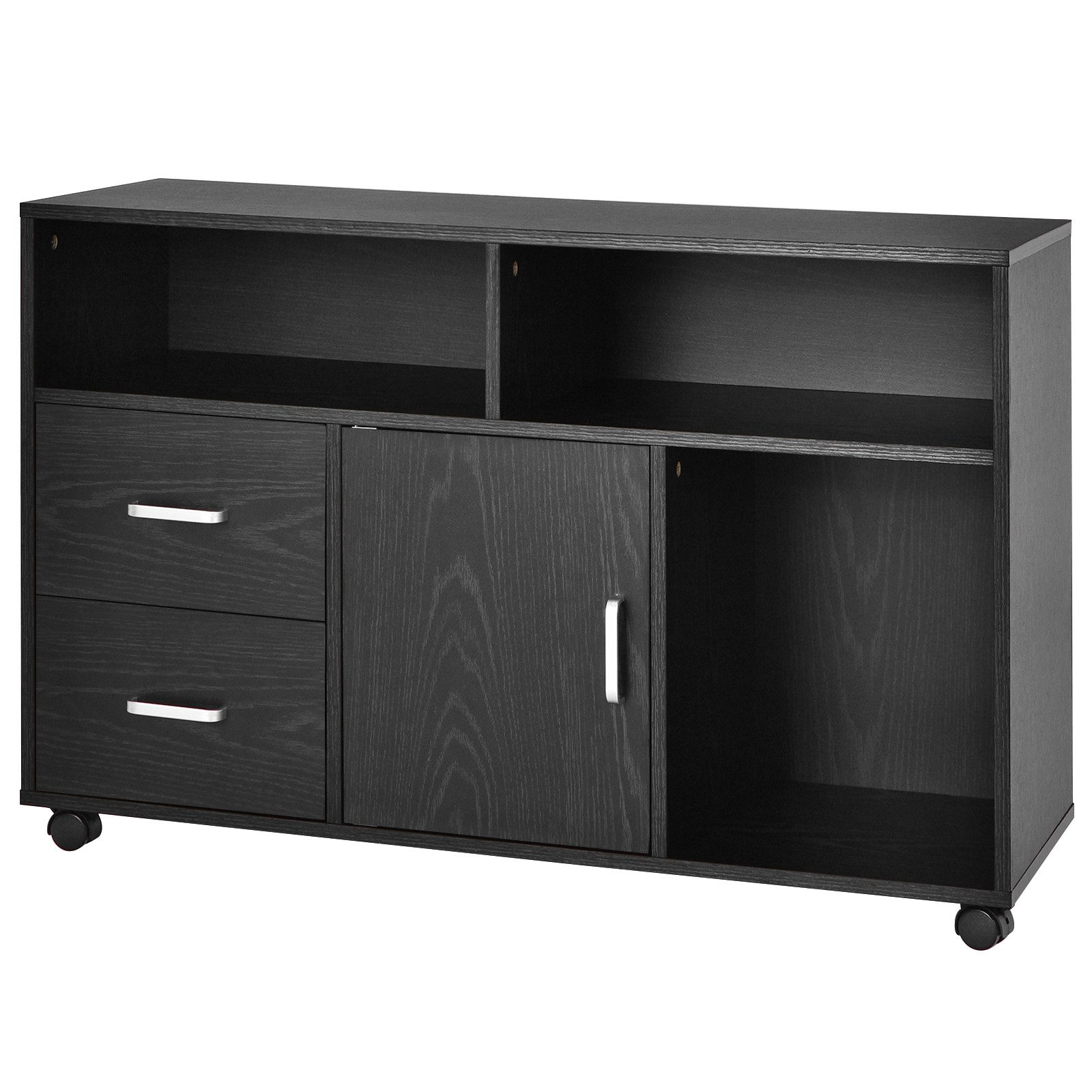 Mit seiner großen Oberseite, 3 offenen Regalen, 2 Schubladen und einem Schrank, haben Sie viel Platz für Drucker, Scanner, Dokumente, Bücher, Dekoration, etc. Zudem ist er mit 5 flexiblen Rollen ausgestattet, von denen 2 Bremsen haben. Dadurch sind je nach Bedarf eine flexible Bewegung und ein fester Stand garantiert. Durch die festen MDF-Platten ist eine hohe Stabilität und langfristige Nutzung garantiert. Mit den leichtgängigen Schienen und den Metallgriffen lassen sich die Schubladen ideal nutzen. Unser Rollcontainer ist durch seinen schlichten und modernen Stil eine tolle Ergänzung für Ihr Zuhause!