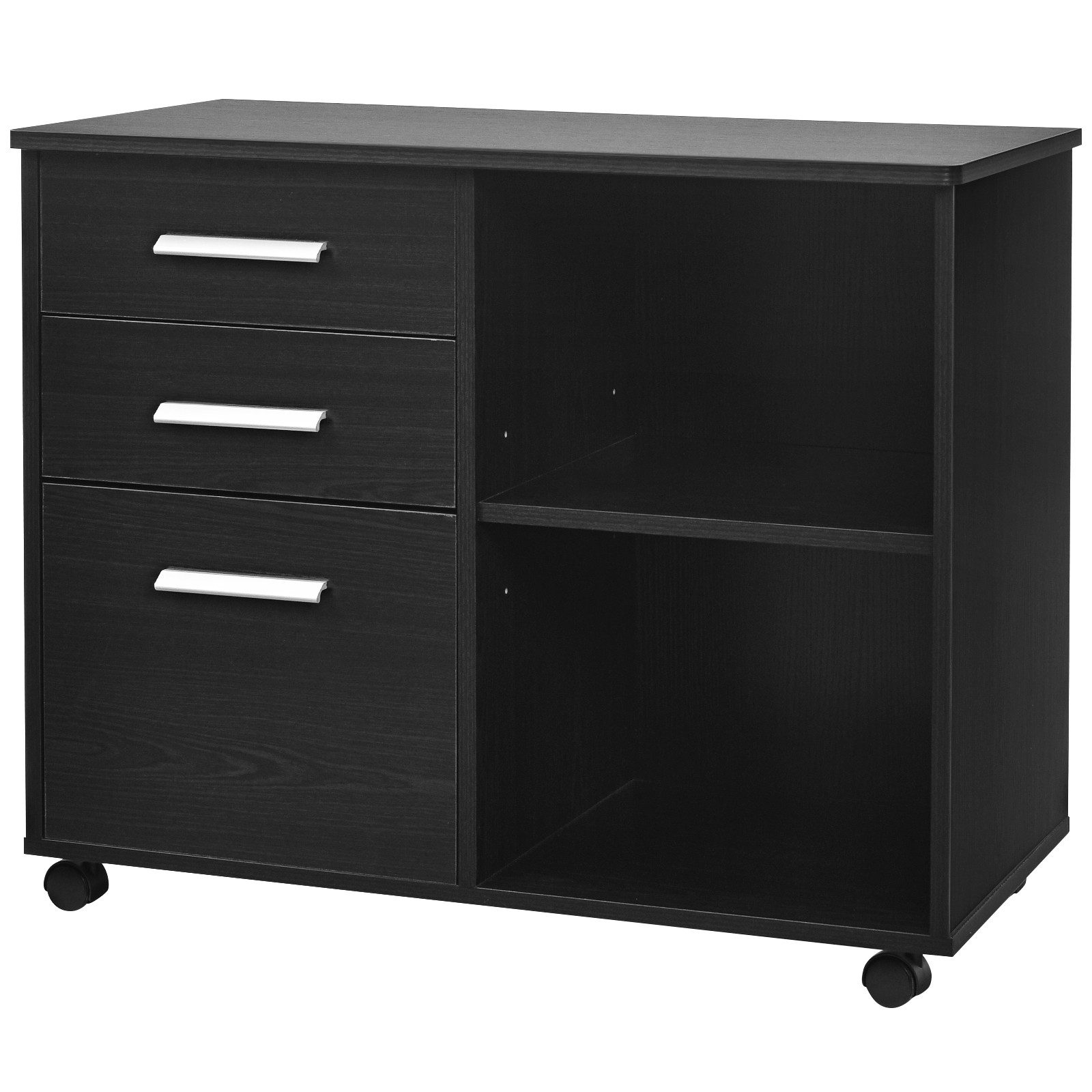 Dieser Büroschrank aus strapazierfähigem Holzwerkstoff kann lange verwendet werden. 2 kleine Schubladen, 1 große untere Schublade und offene Regale bieten ausreichend Stauraum, der sich sehr gut zum Aufbewahren Ihrer Akten, Bücher, Schreibwaren usw. eignet. Glatte Schubladenführungen und breite Griffe sorgen für einfachen Zugriff auf Gegenstände. Dieser Schrank verfügt außerdem über fünf 360°-Schwenkräder für eine einfache Bewegung. Es ist erwähnenswert, dass 2 feststellbare Vorderräder zusätzliche Stabilität für Gegenstände bieten, die auf der Oberseite des Schranks platziert werden. Dieser mobile Aktenschrank mit 3 Schubladen kombiniert Ästhetik und Funktionalität und ist eine ideale Aufbewahrungslösung für Ihr Büro, Wohn- oder Schlafzimmer!