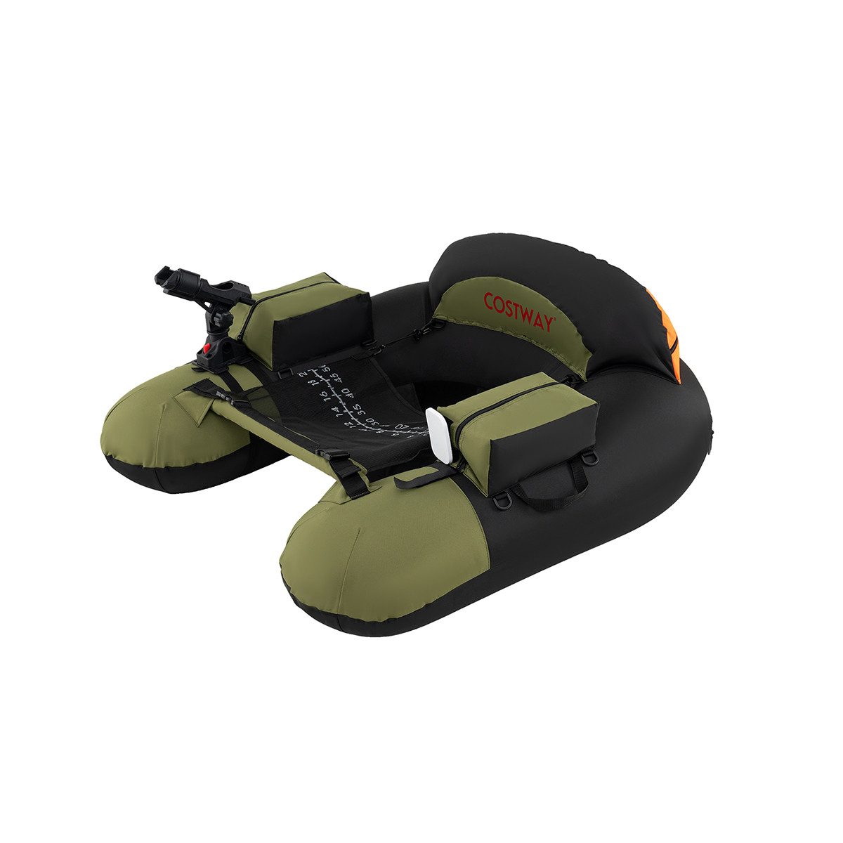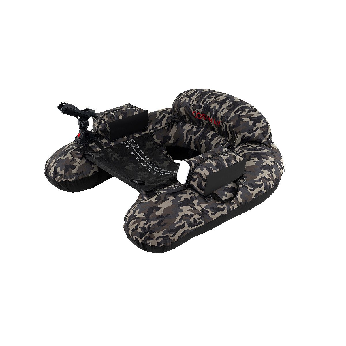 Dieses Belly Boat bietet zusätzlichen Stauraum für den Angelkomfort, einschließlich 2 geräumiger Aufbewahrungsboxen, eines verstellbaren Angelrutenhalters und eines Fischmaßstabs. Genießen Sie überlegenen Auftrieb mit 2 unabhängigen Luftkammern. Das Aluminium-Paddel und die 2 Flossen ermöglichen es, enge Kurven einfach zu handhaben und Hindernisse zu umschiffen. Die Inflation und der Transport sind mit der enthaltenen manuellen Pumpe und den Trägern ein Kinderspiel.