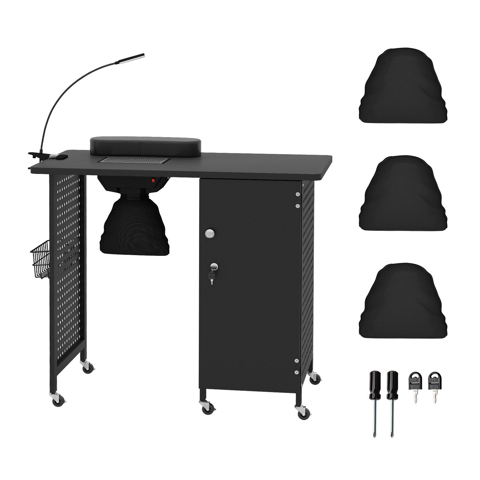 Erhöhen Sie Ihre Nagelpflege-Erfahrungen mit dem Manikürtisch. Der Nagel-Manikürtisch ist mit 4 abnehmbaren Schubladen ausgestattet, die ausreichend Stauraum bieten, um Ihre Utensilien ordentlich zu organisieren. Zuzüglich verfügt der Schönheitssalon-Tisch über einen abschließbaren Stauraum mit 2 Schlüsseln, um persönliche Gegenstände zu sichern und unabsichtlichen Zugriff durch Kinder zu verhindern. Ein integrierter elektrischer Abzugsventilator zusammen mit 3 Staubsammlern hilft, Staubansammlungen zu minimieren. Ein bequemen in Kunstleder gepolstertes Kissen verbessert das gesamte Nagelpflegeerlebnis. Zudem ist der Tisch mit einer verstellbaren LED-Leuchte ausgestattet, die sowohl Farbton als auch Helligkeit individuell an Arbeitspräferenzen anpassen lässt.