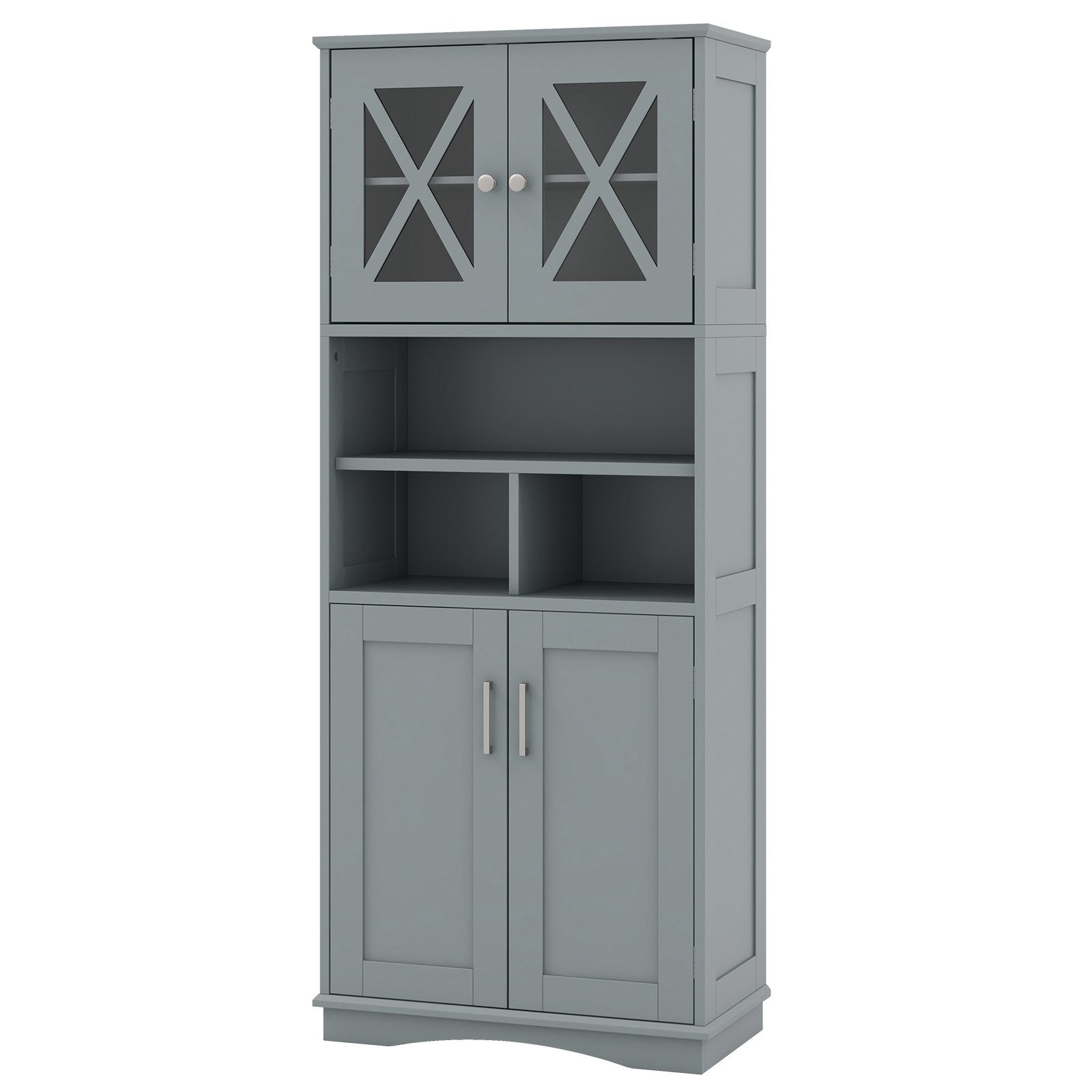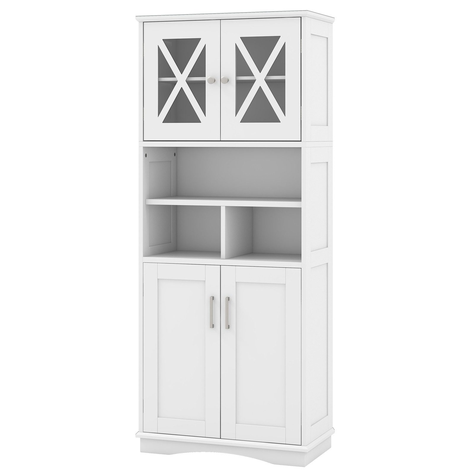 Dieser geräumige Badezimmerschrank verwandelt Ihr Badezimmer in einen organisierten Raum und bietet viel Stauraum für Handtücher, Toilettenartikel und Kosmetika. Er verfügt über ein Oberfach, ein großes Fach, 2 offene Regale und einen 2-Türenschrank mit 3 verstellbaren Regalen für Artikel jeder Größe. Hergestellt aus hochwertigem, stabilem MDF ist der Schrank kinder- und haustierfreundlich, mit einer stabilen Basis und 2 Umkippvorrichtungen für die Wandbefestigung. Die Acryltüren im Oberfach sorgen für Transparenz und rustikalen Charme, während die wasserabweisende Oberfläche eine einfache Reinigung ermöglicht. Das moderne Design passt zu jeder Einrichtung und macht den Schrank vielseitig einsetzbar für Badezimmer, Wohnzimmer, Arbeitszimmer oder Küche.