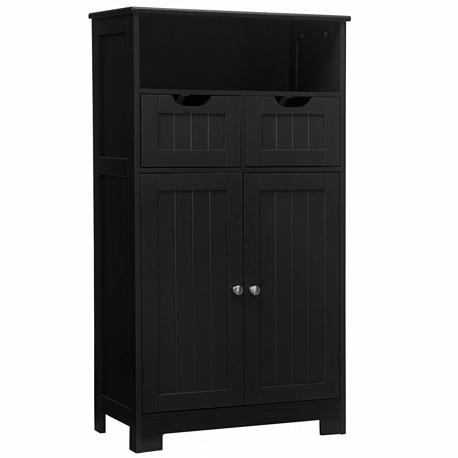 Dieser bodentiefe Schrank ist die perfekte Möglichkeit, in Ihrem Zuhause viel Platz zu sparen! Die Aufteilung in drei verschiedene Ebenen eignet sich ideal, um Ihre Gegenstände zu sortieren und geordnet zu lagern. Die offene Regalfläche bietet hierbei einen idealen Platz für Ihre alltäglich benötigten Artikel, damit Sie diese schnell und bequem erreichen können. Die zwei Schubladen können Sie je nach Ihren Vorstellungen in der mittleren oder obersten Ebene positionieren und die unterste Ebene teilt sich in zwei Regalfächer auf, deren Trennboden Sie zusätzlich verstellen oder herausnehmen können.Sie können diesen vielseitigen Schrank außerdem nicht nur in Ihrem Badezimmer nutzen, sondern ebenso in Ihrem Schlafzimmer, dem Wohnzimmer und Ihrer Küche als freistehenden Organizer aufstellen. Dank seiner stilvollen Optik wird sich dieser Schrank ideal in jede bereits bestehende Einrichtung einfügen.