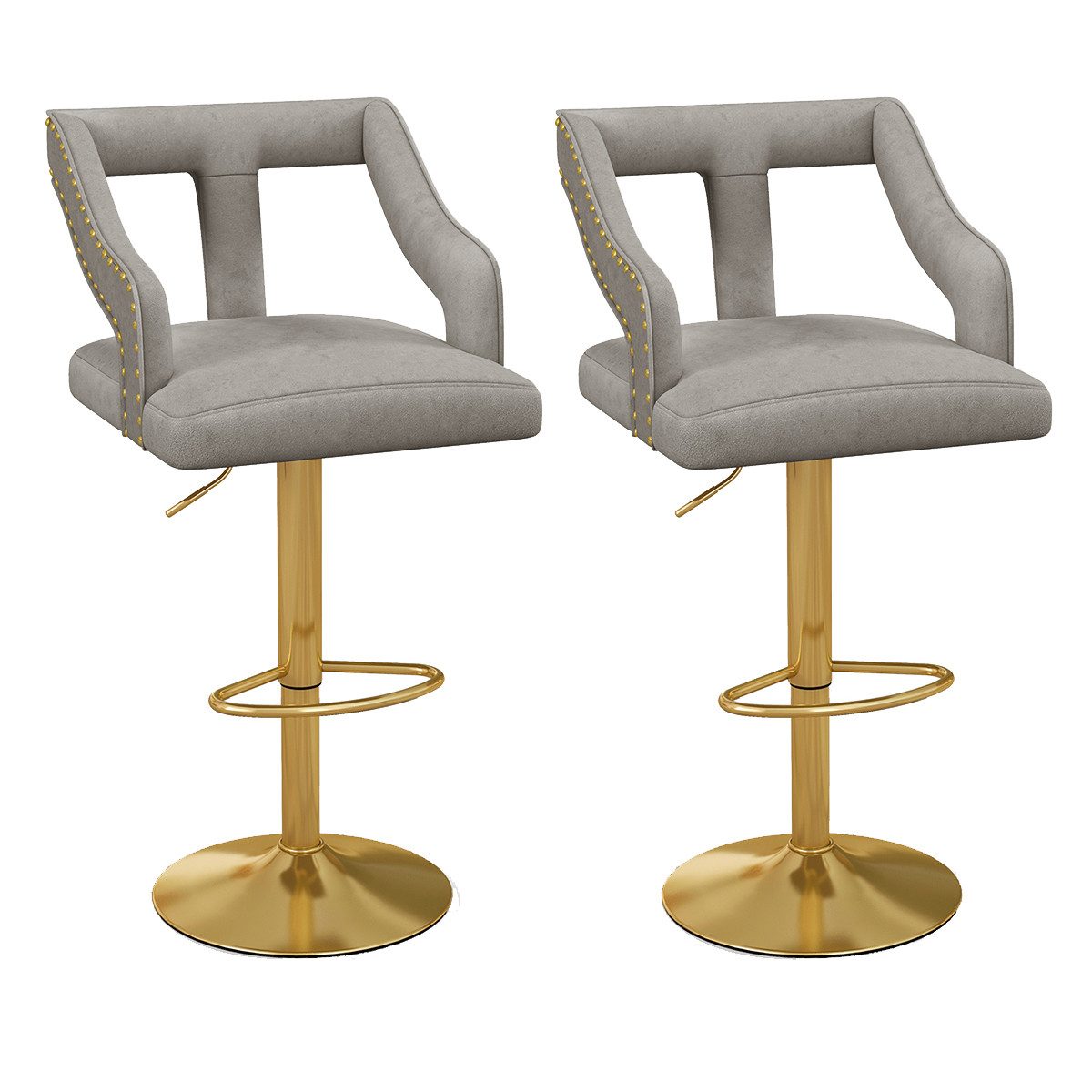 Bezogen mit weichem Samt, bieten diese Barhocker eine angenehme Sitzfläche. Die T-förmige Rückenlehne und der breite Sitz schaffen ein elegantes Ambiente. Dank der höhenverstellbaren Gasdruckfeder können Sie die Sitzhöhe zwischen 63-85 cm anpassen. Die ergonomische Fußstütze bietet zusätzliche Entspannung. Der drehbare Sitz erleichtert es, sich zu unterhalten und nach Gegenständen zu greifen, ohne den Stuhl zu bewegen. Die kratzfeste Metallbasis mit zweischichtiger Elektroplattierung sorgt für Stabilität und ist mit einem Anti-Rutsch-Ring ausgestattet, der den Boden schützt. Ob Esszimmer, Küche oder Pub, dieses Barhocker-Set ist vielseitig einsetzbar und schnell montiert.
