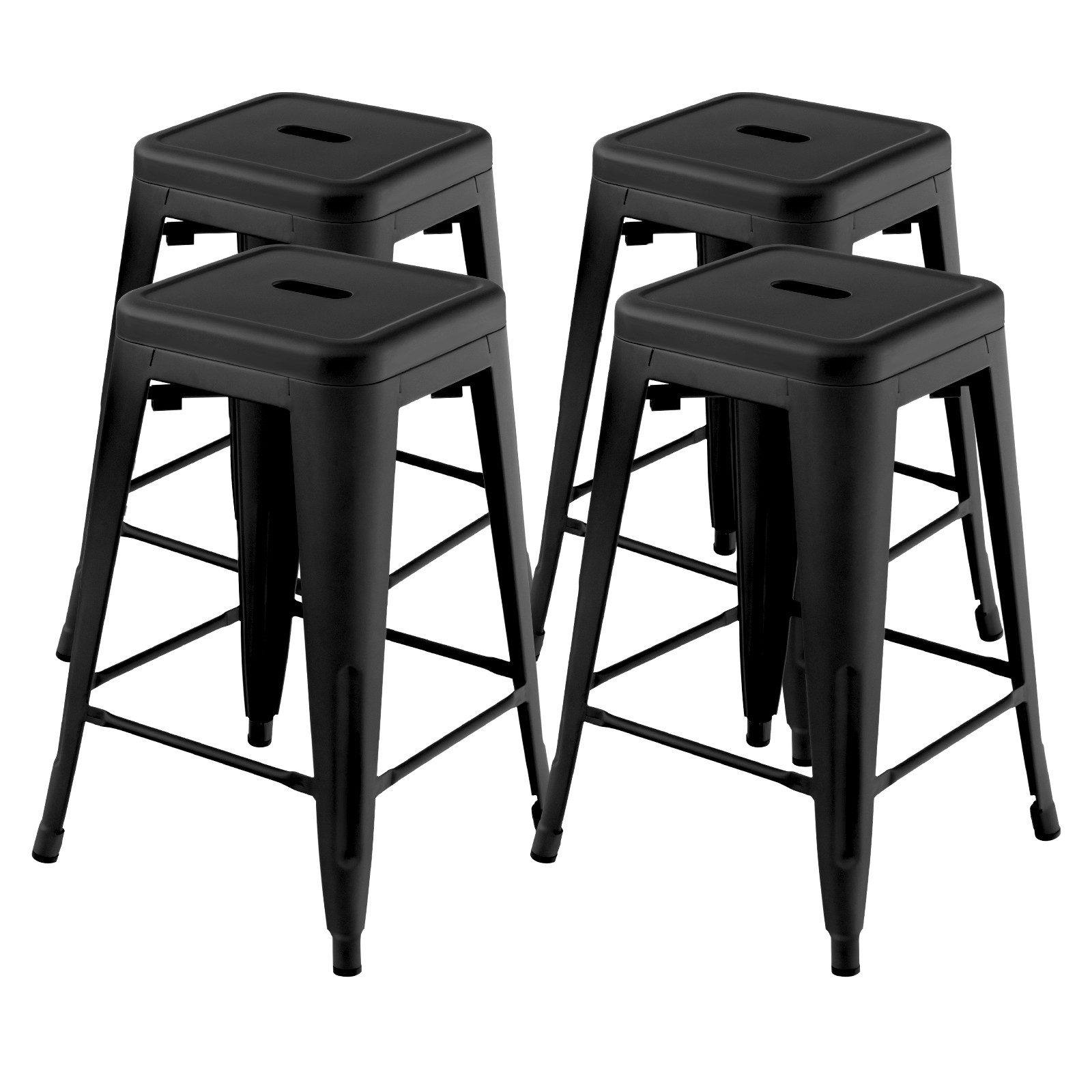 Unsere 61 cm hohen Barhocker verleihen Ihrer Küche, Ihrem Esszimmer oder Ihrer Hausbar einen Hauch von Struktur. Dank der mit Kunststoff besprühten Oberfläche sind unsere Hocker rostfrei, verschleißfest und leicht zu reinigen. Darüber hinaus sorgen vier solide Metallbeine mit rutschfesten Fußpolstern dafür, dass das Gerät stabil auf dem Boden bleibt. Das X-förmige Design unter dem Sitz sorgt für mehr Stabilität. Bei Nichtgebrauch können Sie alle Hocker stapeln und in einer beliebigen Ecke aufbewahren. Dank der Grifföffnung am Sitz können Sie den Hocker problemlos von einem Ort zum anderen bewegen. Und dieses Set erfordert keine Montage, sodass Sie keine Zeit mit komplizierten Installationsschritten verschwenden.