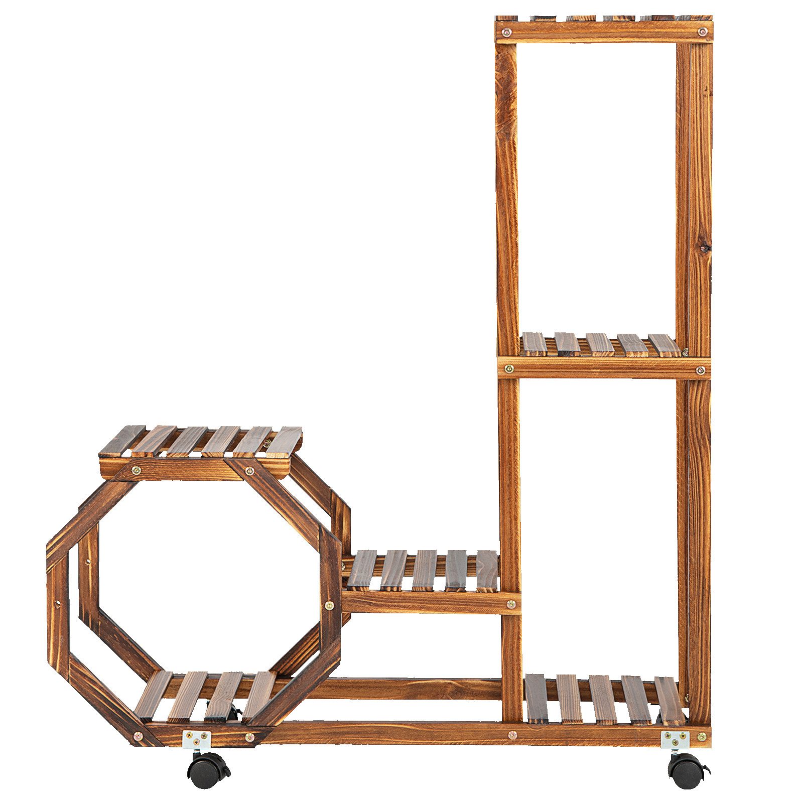 Eine elegante Art, Ihre schönen Pflanzen zu präsentieren! Unser Pflanzenständer aus Holz verfügt über 6 offene Regale für die Präsentation schöner Topfpflanzen. Und die Hoch-Tief-Struktur bietet ausreichend Platz für Pflanzenwachstum und sorgt für volle Sonneneinstrahlung, die allen Pflanzen zugute kommt. Darüber hinaus kann das Ausstellungsregal auch verwendet werden, um Ihre Lieblingsornamente, Fotorahmen, Bücher, Sammlungen und mehr zu präsentieren und Ihrem Zuhause Highlights zu verleihen. Das Blumenregal besteht zu 100 % aus natürlichem Kiefernholz und wurde bei hoher Temperatur karbonisiert, was eine gute Stabilität und Langlebigkeit gewährleistet.
