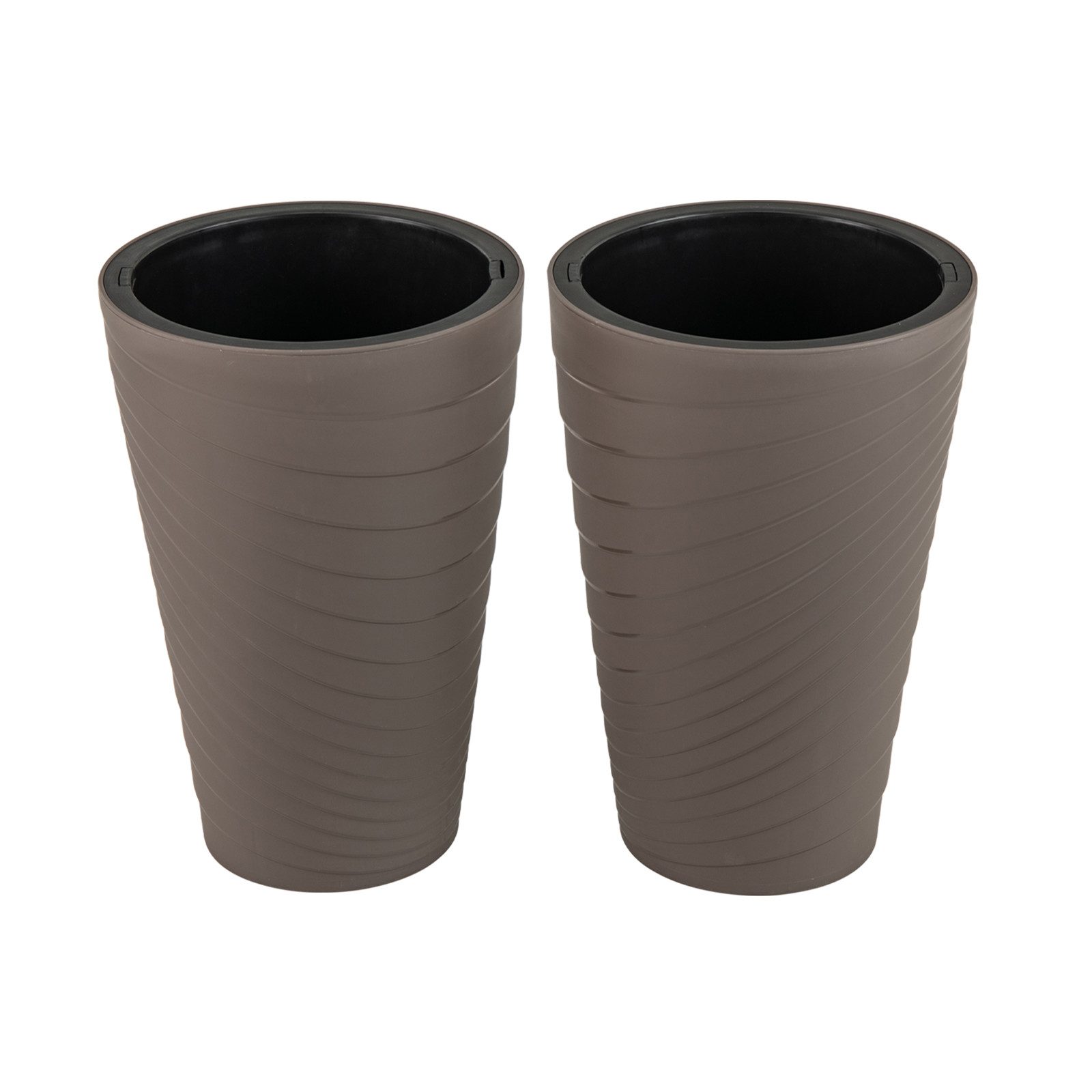Dieser 45 cm hohe rund spiralförmig texturierte Blumentopf ist sowohl funktional als auch vielseitig. Hergestellt aus hochwertigem PP-Material, ist er robust, farbresistent und verschleißfest, was Langlebigkeit im täglichen Gebrauch gewährleistet. Der Topf verfügt über ein hervorragendes Drainagesystem mit 3 großen und 48 kleinen Drainagelöchern sowie einen Filterstopfen, der es ermöglicht, bei Bedarf zusätzliche Löcher zu bohren, wodurch Wurzelfäule effektiv verhindert und ein gesundes Pflanzenwachstum gefördert wird. Außerdem kann der abnehmbare Innenbehälter, ausgestattet mit 2 praktischen Griffen, einfach zur Reinigung oder zum Austausch der Erde entnommen werden, was die Benutzerfreundlichkeit des Topfes erhöht. Somit kann dieses 2-teilige Pflanzgefäß-Set natürliche Schönheit in Poolbereich, Wohnzimmer, Terrasse oder Veranda bringen.