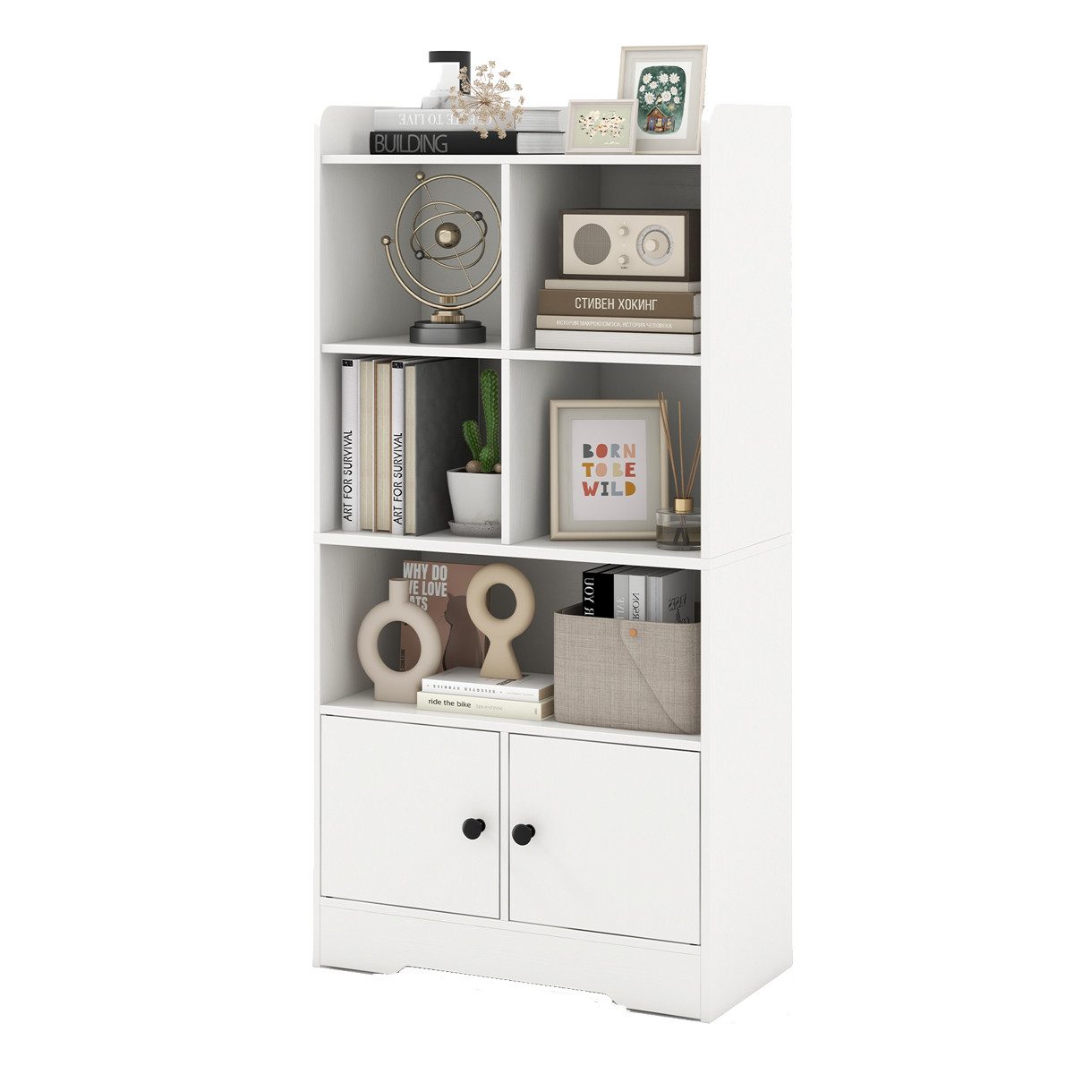 Mit einer geräumigen Ablagefläche oben und 5 offenen Fächern ist es perfekt für die Präsentation von Büchern, Topfpflanzen und charmanten Dekorationen. Darunter bietet ein diskreter, geschlossener Schrank mit 2 Türen reichlich Stauraum für Kleinigkeiten und andere wichtige Dinge und sorgt für Ordnung in Ihrem Bereich. Das Bücherregal kann auch als Vitrine oder allgemeine Aufbewahrungseinheit dienen und ist somit ideal für jeden Raum. Unser Regal besteht aus verdickten Brettern für eine robuste Stütze und ist mit 2 Kippschutz-Kits ausgestattet. Es sorgt für Haltbarkeit und Stabilität und ist somit eine zuverlässige Ergänzung für Ihr Zuhause.
