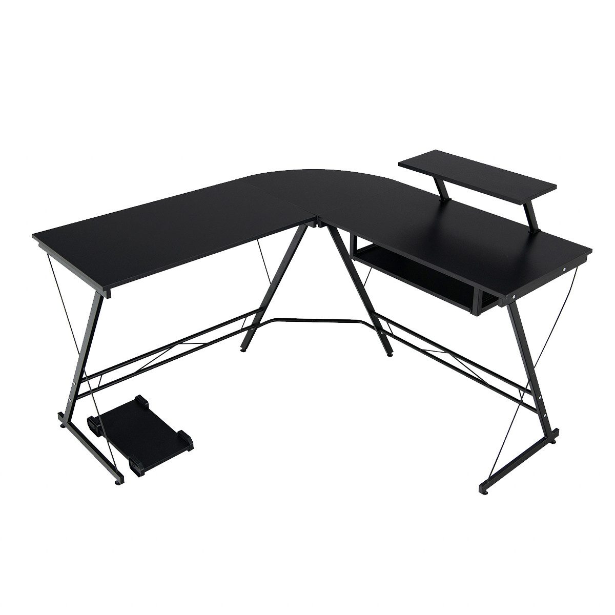 Platzsparend konzipiert, ist unser Computertisch für viele Gelegenheiten praktisch. Die L-förmige Eckschreibtisch passt perfekt in die Ecke, um Ihren begrenzten Platz voll auszunutzen. Um die Arbeitsfläche zu maximieren, verfügt der Gaming-Schreibtisch außerdem über verschiedene praktische Teile. Die Tischplatte ist so konzipiert, dass sie sowohl für einen freien Arbeitsplatz als auch für ausreichend Stauraum für Computer ausreichend geräumig ist. Es gibt eine abnehmbare Monitorablage mit ergonomischer Höhe, die auf beiden Seiten installiert werden kann. Und eine ausziehbare Ablage mit Metallschienen bietet Platz für Ihre Tastatur. Unten ist auch ein beweglicher Host-Ständer vorgesehen. Gleichzeitig verbessern verstellbare Fußpolster auch die allgemeine Stabilität.