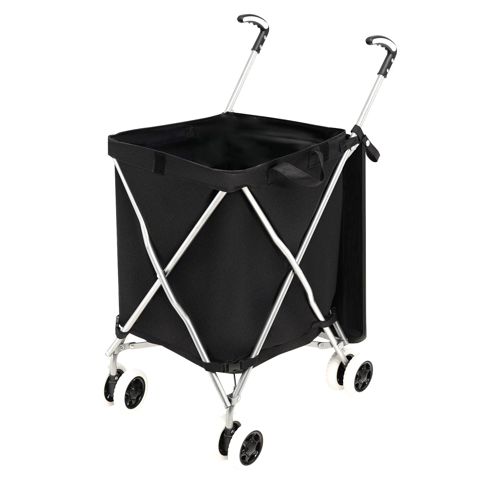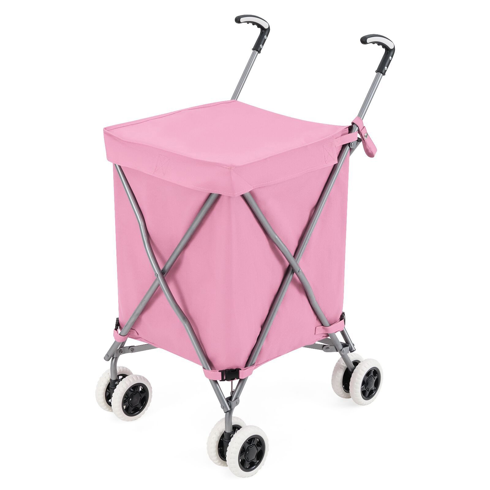 Dieser zusammenklappbare Handwagen wird ein guter Helfer beim Einkauf sein! Dieser Einkaufswagen mit wasserdichtem und waschbarem Innenfutter wird durch den robusten Metallrahmen mit stabiler X-förmiger Konstruktion gestützt und bietet Platz für verschiedene Lebensmittel. In der Zwischenzeit verfügt der Liner über eine passende Abdeckung zum Schutz der Privatsphäre. Die leisen und stoßfesten Räder sowie die griffigen Griffe machen das Schieben mühelos. Wenn Sie diesen Einkaufswagen nicht benötigen, klappen Sie ihn einfach zusammen und stellen ihn platzsparend an der Wand ab.