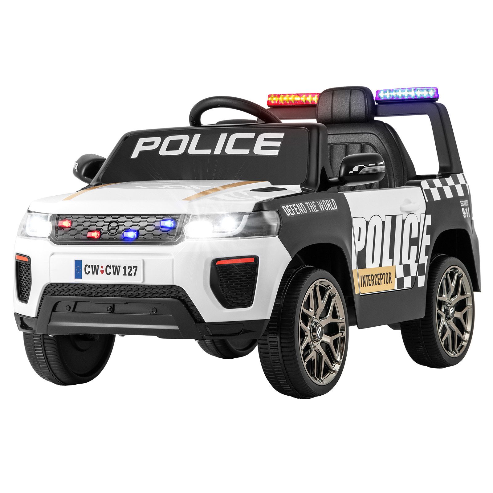 Dieses elektrische Polizeiauto ist mit zwei 12V-Motoren und einem Lenkmotor ausgestattet und vermittelt ein realistisches Fahrerlebnis. Kinder können selbstständig mit Lenkrad, Steuerhebel und Pedal fahren. Für zusätzliche Sicherheit können Eltern das Polizeiauto mit der mitgelieferten Fernbedienung steuern. Mit Federung an allen 4 Rädern bietet dieses batteriebetriebene Spielzeugauto eine sanfte Fahrt auf verschiedenen Oberflächen. Vollgepackt mit aufregenden Funktionen wie Sirenen und LED-Blinklichtern, sorgt dieses 12V-Polizeiauto für ein intensives Spielerlebnis. Geeignet für Kinder von 3 bis 8 Jahren, fördert dieses Polizeiauto ein realistisches Fahrerlebnis.