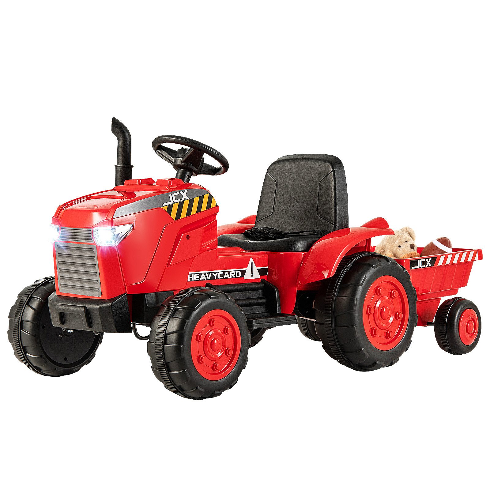 Unser elektrischer Kindertraktor mit Anhänger sorgt für stundenlanges phantasievolles Spielen! Der simulierte Schornstein, die LED-Scheinwerfer und die coole Karosserie machen ihn wie einen echten Traktor aussehen. Ein großer abnehmbarer Anhänger sorgt für noch mehr Spaß. Er verfügt über stoßfeste Räder mit Federung für ein aufregendes Fahrerlebnis. Er verfügt auch über Hupe, Musik, Radio, MP3 und kabellose Verbindung, um Kinder zu unterhalten. Kinder können das Lenkrad, die Vorwärts-/Rückwärts-Taste und das Fußpedal verwenden, um das Auto unabhängig zu steuern. Zum Betätigen des Schalters auf der Fernbedienung ist ein Schraubendreher erforderlich, um zu verhindern, dass Kinder ihn versehentlich berühren. Die sanfte Startfunktion und der Sicherheitsgurt machen ihn sicherer und zuverlässiger.