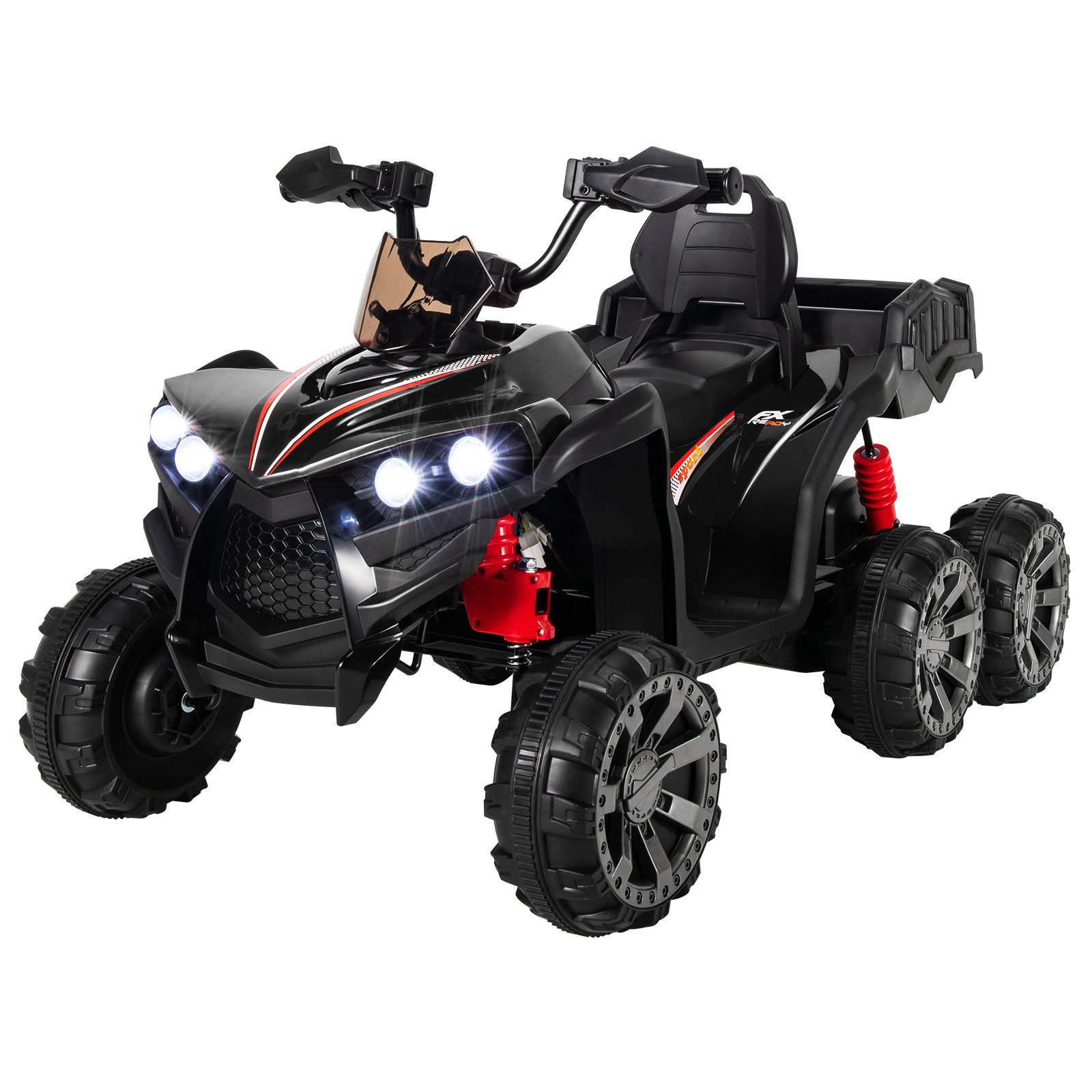 Das coole Quad-Erscheinungsbild, die hellen LED-Lichter, die Musik und die Story-Taste sorgen für zusätzlichen Spaß bei Kindern. Darüber ermöglichen der breite Sitz und die bequeme Fußstütze den höchsten Komfort. Das Design der Rückenlehne kann Kinder perfekt davor schützen, plötzlich nach hinten umzukippen. Außerdem eignen sich seine 6 verschleißfeste Räder für Holzböden, Gummiketten und Zementstraßen. Ausgestattet mit 4 Antriebsmotoren kann die Geschwindigkeit unseres Fahrzeugs 3-6 km/h erreichen. Zudem sorgen der wiederaufladbare Akku (12 V, 10 Ah) und der UL-zertifizierte Ladeadapter dafür, dass Kinder nach dem Aufladen mehr als 40 Minuten lang Freude am Fahren haben.