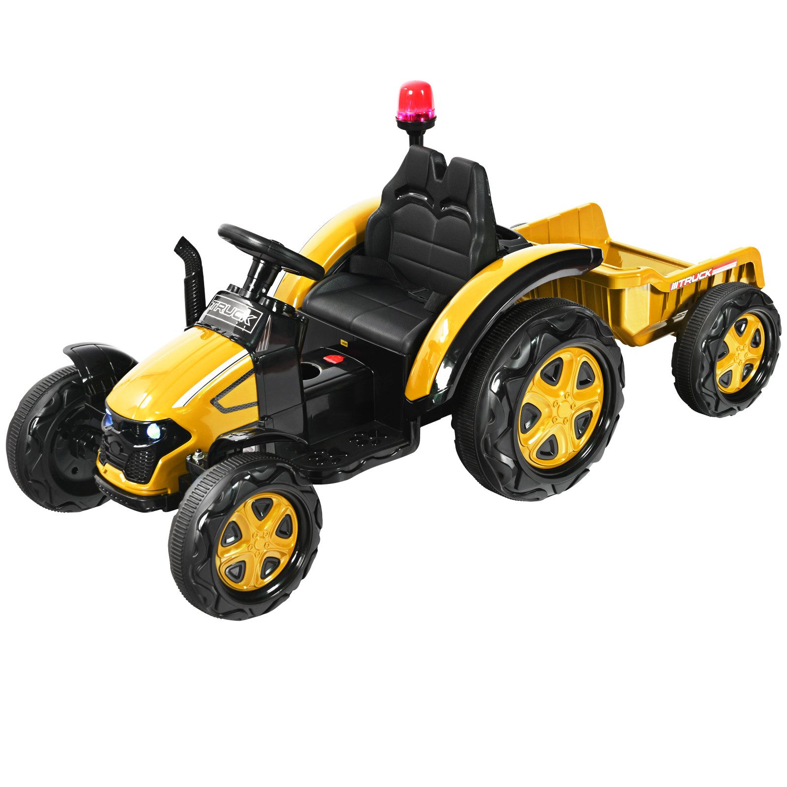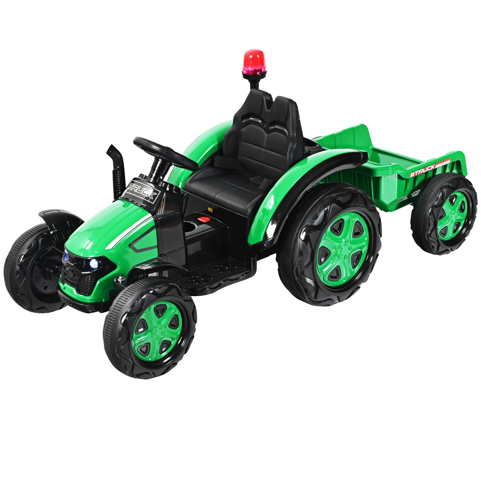 Unser Spielzeugtraktor mit Anhänger ist das perfekte Geschenk für Kinder. Es besteht aus hochwertigem Material und fördertdie Koordination der Kinder, zudem kann es auf verschiedensten Untergründen verwendet werden. Der Musikplayer, die Hupeund der MP3-Player sorgen für musikalische Untermalung während des Fahrens. Um die Sicherheit der Kinder zu gewährleisten, ist das Gefährt mit einem 2-Punkt-Sicherheitsgurt sowie einer Fernbedienung für die Elternausgestattet. Dank der detaillierten Anleitung gelingt der Aufbau des Fahrzeugs schnell.