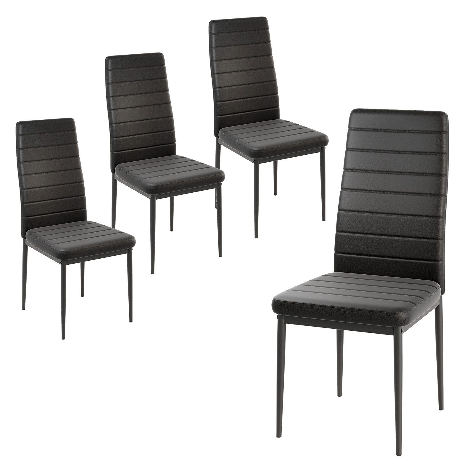Werten Sie Ihr Esserlebnis mit unseren modernen, bequemen und robusten Esszimmerstühlen auf. Unsere Stühle sind aus hochwertigem Kunstleder gefertigt, das nicht nur ein edles, einladendes Aussehen bietet, sondern auch wasserdicht, verschleißfest und pflegeleicht ist. Die hochdichte Schaumstoffpolsterung in Sitz und Rückenlehne sorgt für ein bequemes Sitzerlebnis und macht jede Mahlzeit zu einem Vergnügen. Mit einem robusten und stabilen Rahmen kann jeder Stuhl bis zu 150 kg tragen, perfekt für den täglichen Gebrauch. Diese Stühle sind nicht nur auf Esszimmer beschränkt; ihr elegantes Design und ihr modernes Aussehen machen sie für verschiedene Szenarien geeignet, darunter Wohnzimmer und Restaurants. Der Zusammenbau ist mit klaren Anweisungen ein Kinderspiel und die Abmessungen (52,5 x 41 x 96,5 cm L x B x H) sind durchdacht gestaltet, um perfekt unter Standard-Esstische zu passen.