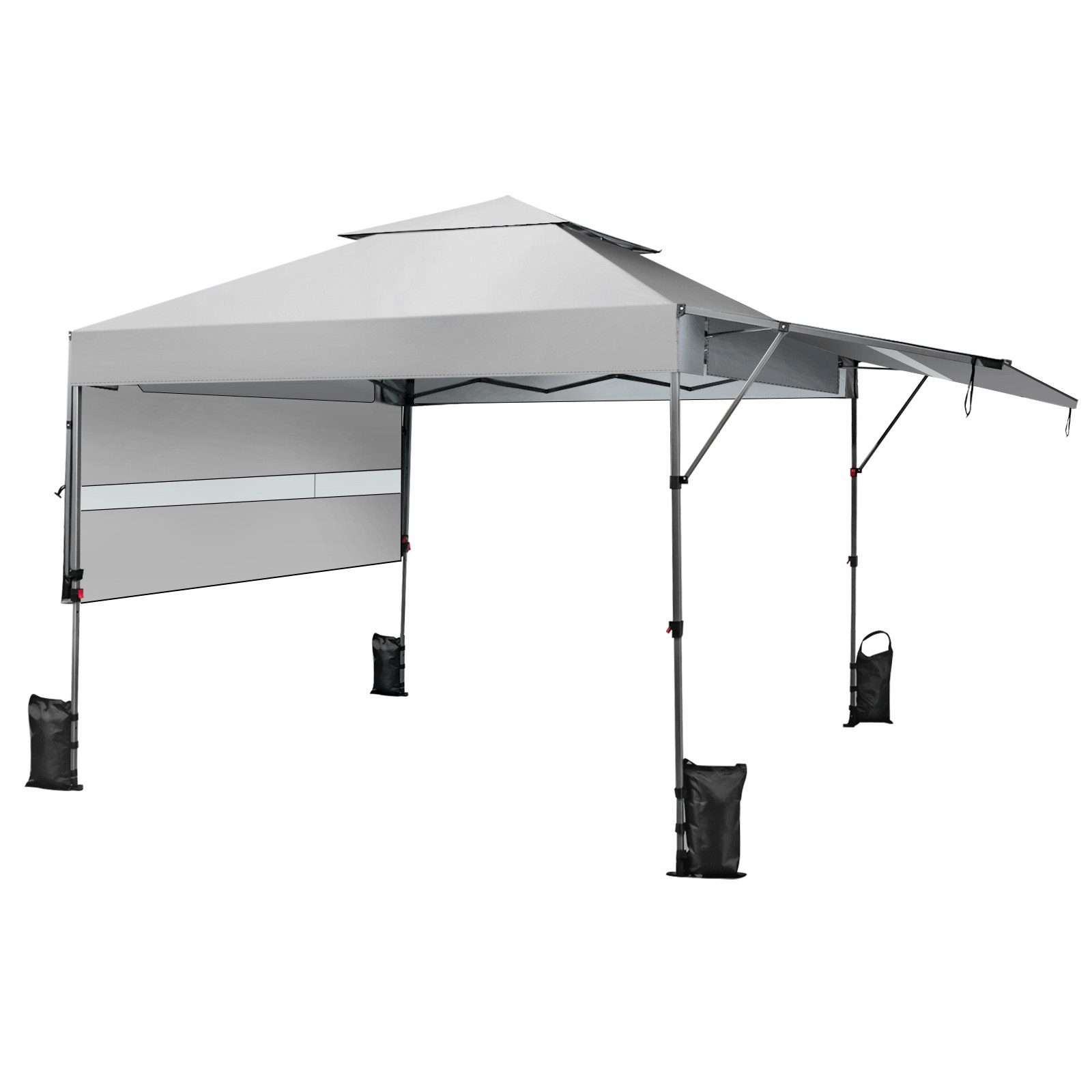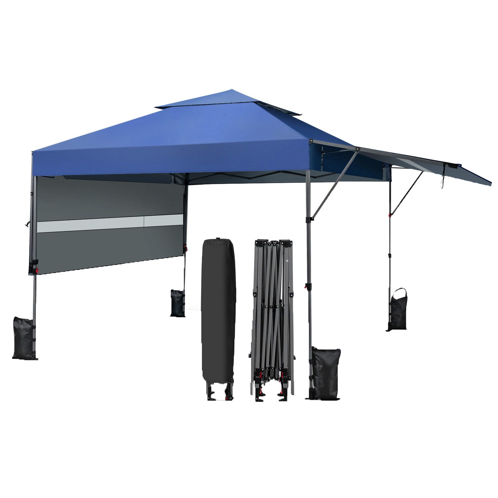 Unser sofort aufklappbares Pavillon mit Markisen misst 300 x 537 x 270–290 cm und bietet einen großen schattigen Außenbereich für Picknicks, Grillabende, Partys, Outdoor-Aktivitäten, Camping, gewerbliche Nutzung und mehr. 2 Seitenmarkisen können für zusätzlichen Schatten- oder Regenschutz nach oben oder unten gestellt werden. Darüber hinaus bieten wir auch eine Rolltasche zur Aufbewahrung des faltbaren Pavillons, wenn es nicht verwendet wird, sodass Sie es problemlos überall hin mitnehmen können. Der Pavillon ist aus strapazierfähigem Oxford-Gewebe mit Silberbeschichtung gefertigt, das sich durch einen hervorragenden Lichtschutzfaktor 50+ für Sonnenschutz, CPAI-84-Flammbeständigkeit und Regenbeständigkeit auszeichnet.