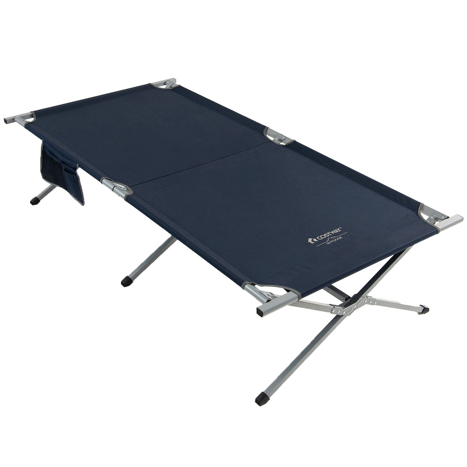 Unser faltbares Campingbett misst 214,5 x 42 x 49,5 cm (L x B x H) und trägt bis zu 150 kg, was für einen Erwachsenen oder ein Kind bequem zum Schlafen ist. Es eignet sich für Outdoor-Abenteuer wie Strand, Camping, Wandern, Picknick und Jagd. Und es ist auch ideal für Schlafzimmer, Wohnzimmer, Gästezimmer, Büro oder überall dort, wo Sie schlafen möchten. Das Campingbett aus hochwertigem Oxford-Gewebe bietet Ihnen den ultimativen Komfort, wenn Sie es im Freien verwenden. Darüber hinaus wird es von einem stabilen Aluminiumrahmen getragen, der nicht leicht rostet, abblättert oder absplittert, was eine langfristige Verwendung im Freien gewährleistet. Außerdem kann das tragbare Feldbett einfach zusammengeklappt und in einer kompakten Tragetasche verstaut werden, was praktisch für Reisen ist. Durch ein so praktisches Design können Sie vermeiden, direkt auf dem Boden zu schlafen. Bitte zögern Sie nicht, nehmen Sie es einfach mit nach Hause und genießen Sie die Zeit im Freien.