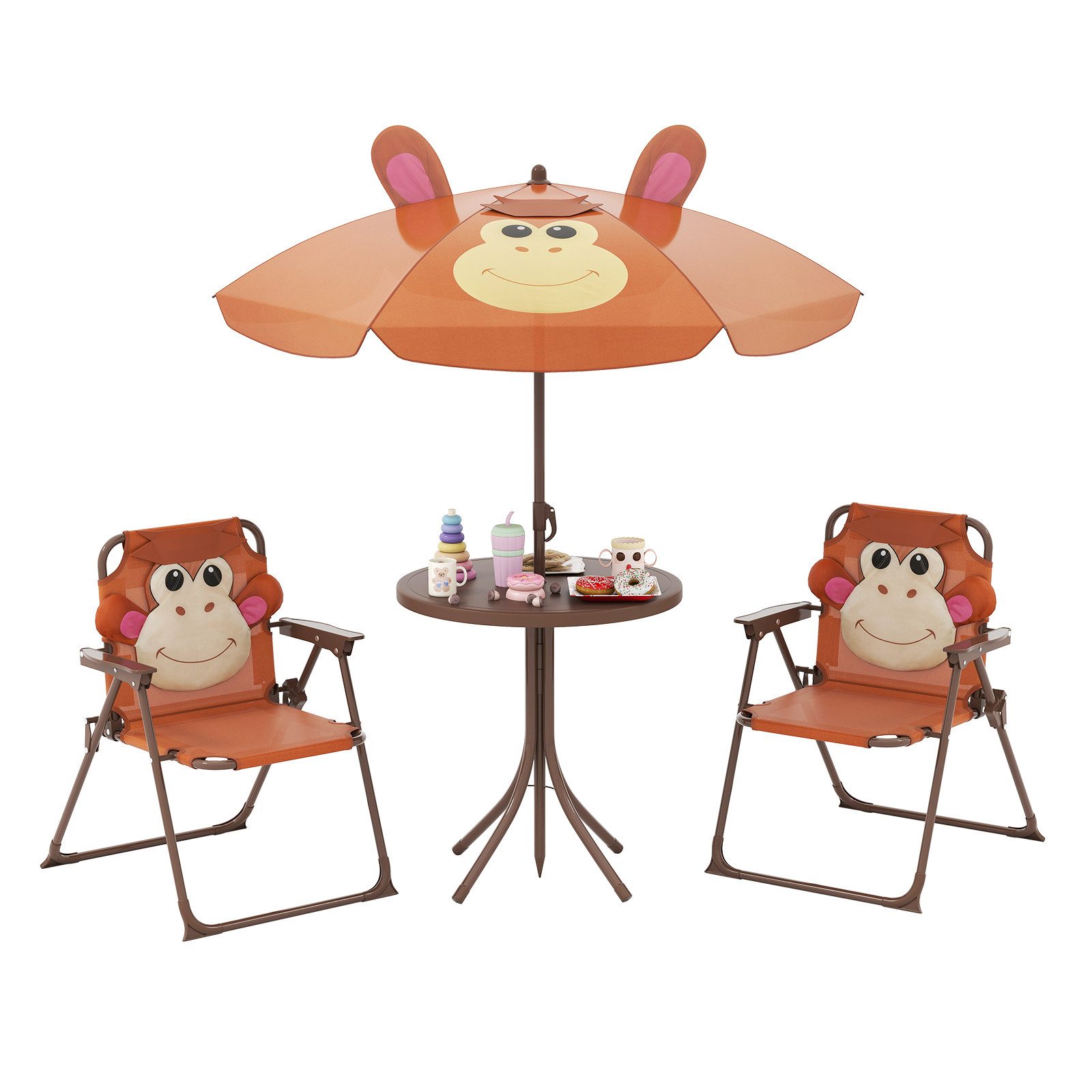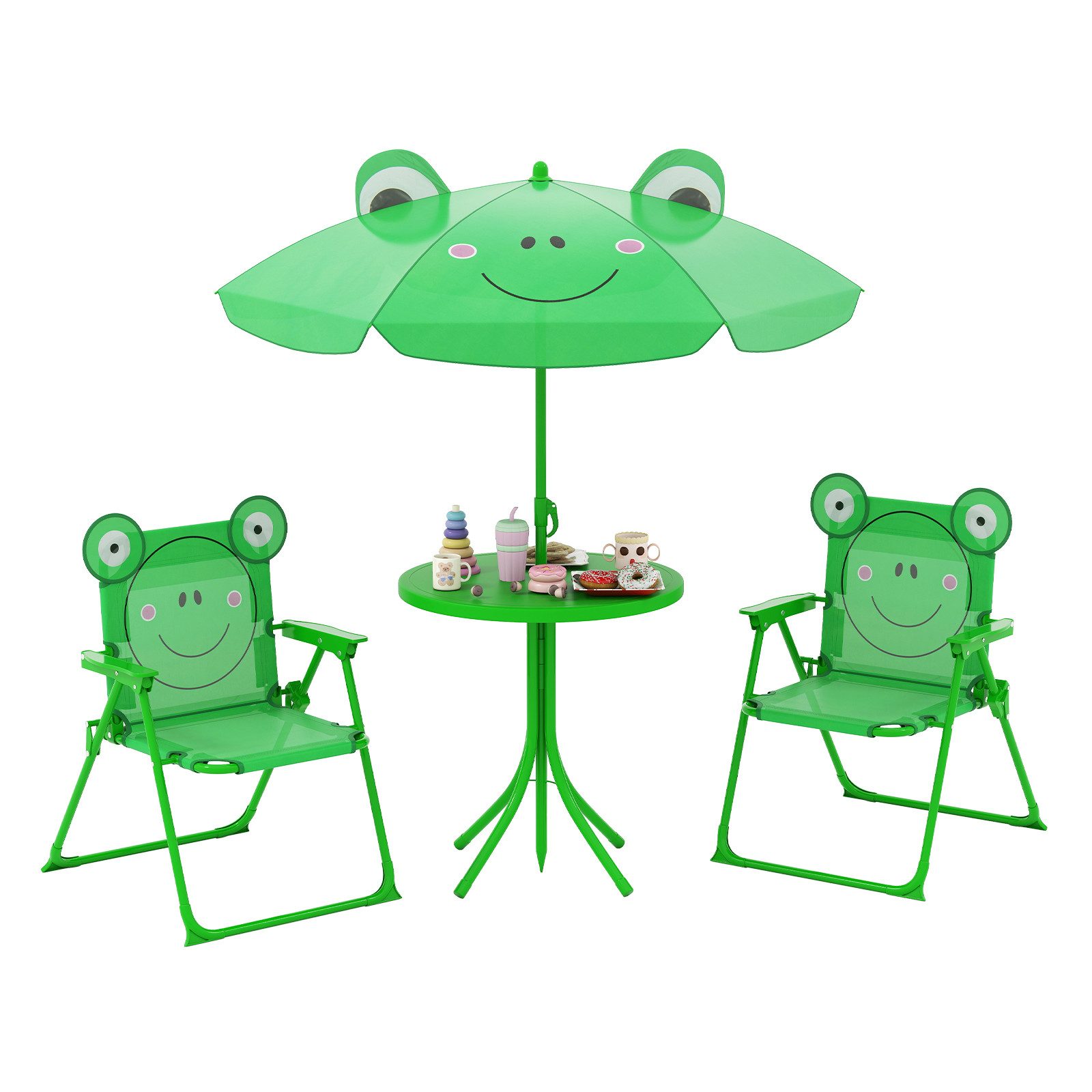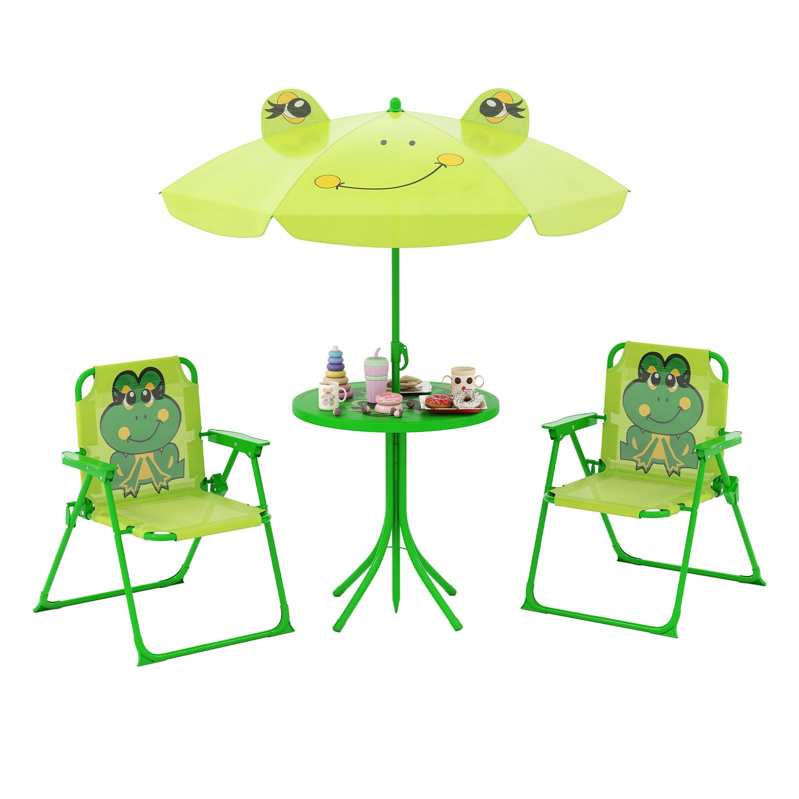 Suchen Sie nach einer süßen und gemütlichen Spielgelegenheit? Entdecken Sie unser Picknick-Set für Kinder – ein wahres Wunderwerk, das jeden Platz in eine gemütliche Spielzone verwandelt! Mit einem zusammenklappbaren Tisch, Sonnenschirm und Stühlen, die sich flach zusammenfalten und so einfach transportieren lassen, ist dieses leichte Set die perfekte Sitzgelegenheit für Picknicks oder Ausflüge. Kinder werden die fröhlichen Frosch-, Affen- und Meerjungfrauen-Muster lieben, während Eltern die praktischen Vorteile zu schätzen wissen: Die verstellbare Höhe des Sonnenschirms sorgt dafür, dass Ihre Kinder immer genau dort Schatten haben, wo sie ihn brauchen, und die breiten Armlehnen und die Sitzflächen aus Oxford-Stoff bieten bequemen Halt beim Essen oder Basteln. Die stabilen Metallrahmen und die rutschfesten Beine halten außerdem Zappeln und Kichern problemlos stand. Bauen Sie es drinnen für Lesestunden an verregneten Tagen auf oder gehen Sie bei warmem Wetter draußen zum Picknick – unser Möbelset macht jeden Tag zu einem kleinen Abenteuer!