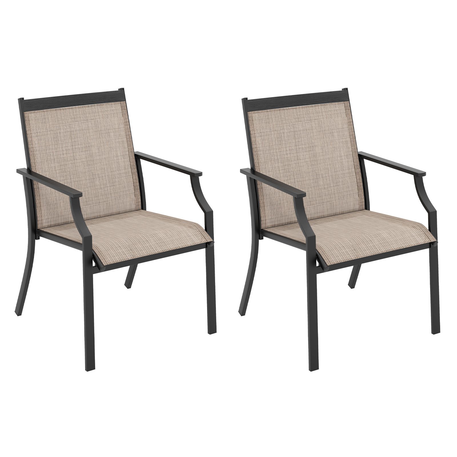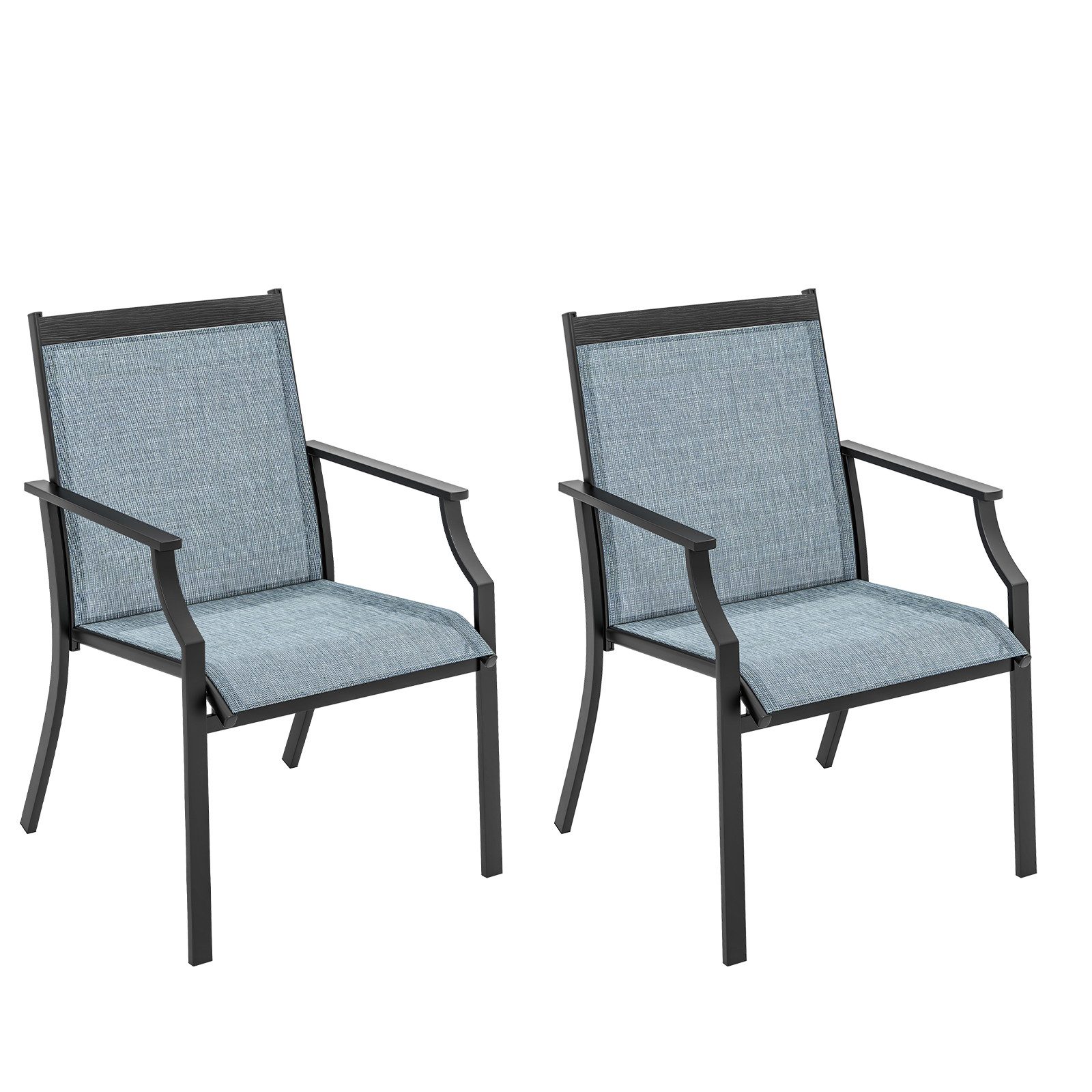Mit einer um 50 cm breiteren Sitzfläche bieten diese Stühle unvergleichlichen Komfort für ultimative Entspannung. Die geschwungene Rückenlehne und der ergonomische Sitz sorgen für eine wirksame Linderung von Ermüdungserscheinungen und geben ein komfortableres Sitzgefühl. Sowohl der Sitz als auch die Rückenlehne sind aus reißfestem und lichtbeständigem Stoff gefertigt und für den langfristigen Einsatz im Freien ausgelegt. Darüber hinaus sind diese Stühle dank eines robusten Metallrahmens verformungssicher und hochfest. Nicht zuletzt macht auch das schöne Aussehen diese Stühle perfekt für verschiedene Außenbereiche, wie zum Beispiel den Hinterhof oder den Poolbereich. Verbessern Sie Ihr Wohnerlebnis im Freien mit diesen soliden und bequemen Terrassenstühlen