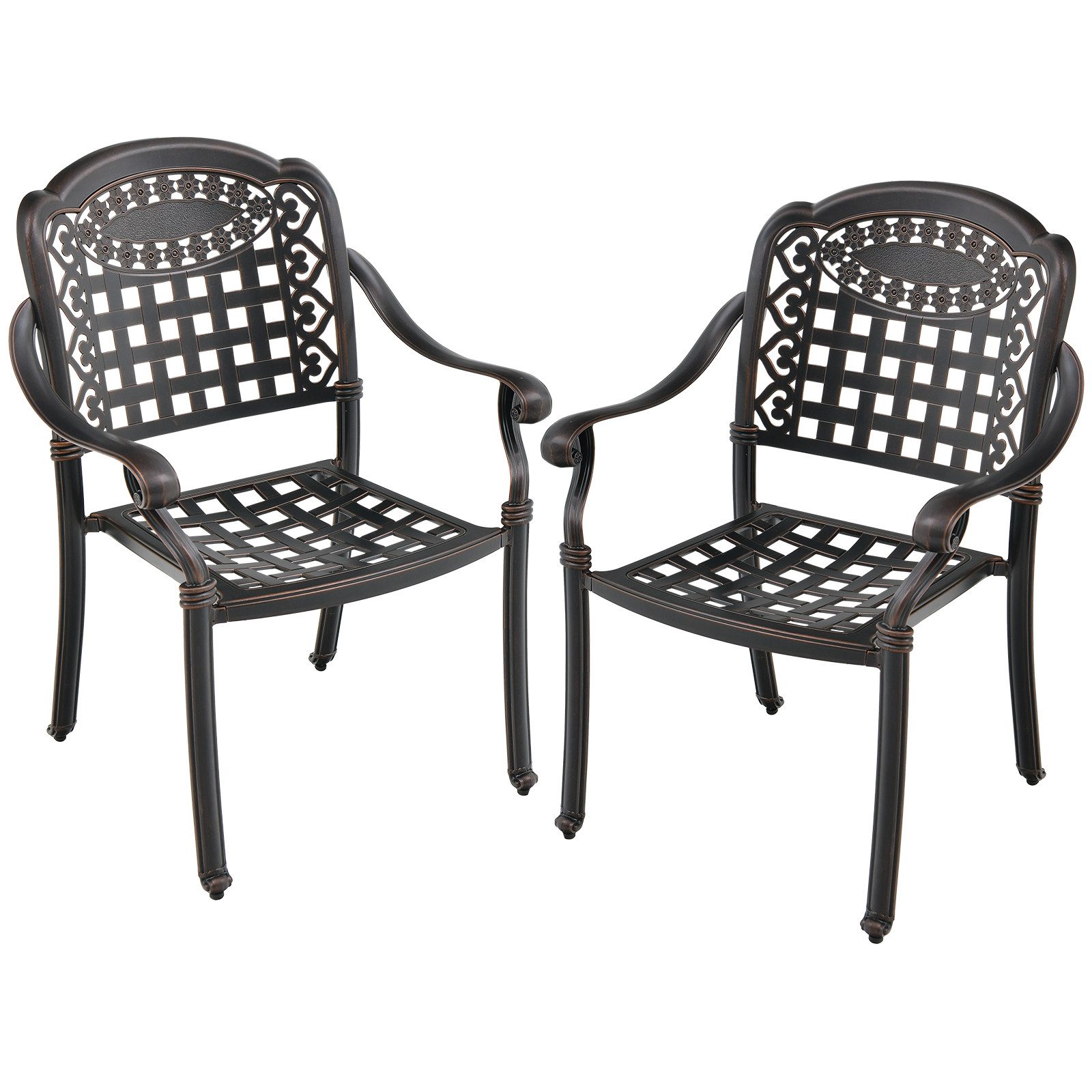 Nach einfacher Montage sind diese Outdoor-Stühle einsatzbereit. Die Rückenlehnen, Armlehnen und Sitze sind alle geschwungen, was für mehr Komfort sorgt. Darüber hinaus garantiert das rostfreie und robuste Aluminiumguss nicht nur eine höhere Haltbarkeit, sondern auch eine starke Tragfähigkeit von 150 kg. Nach dem Gebrauch können Sie diese Gartenstühle einfach stapeln, um Platz zu sparen.