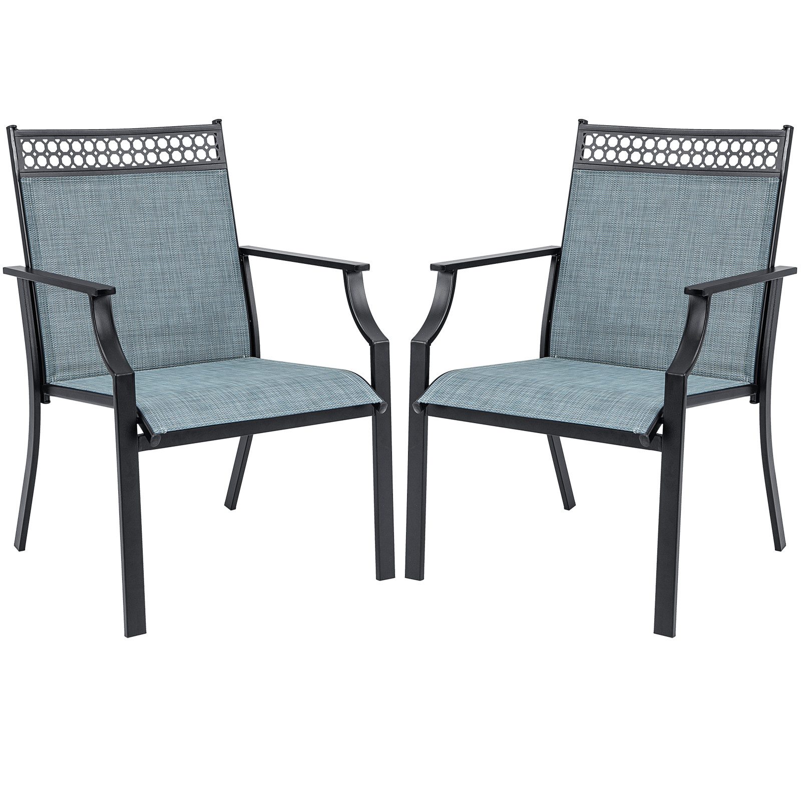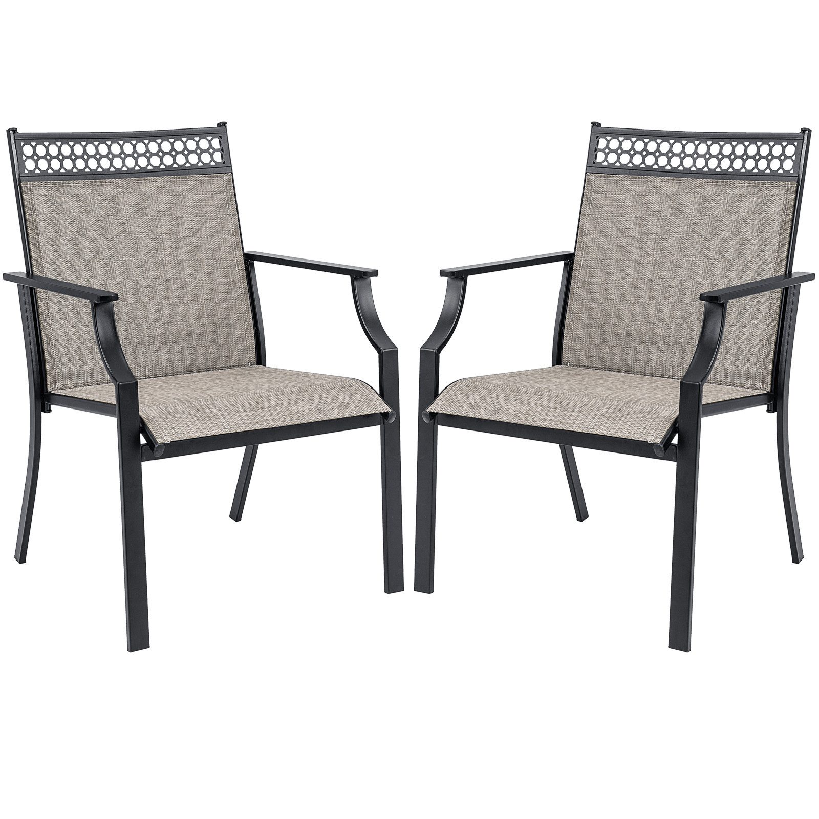 Diese Terrassenstühle sind aus sorgfältig ausgewähltem Stoffmaterial gefertigt, das Atmungsaktivität, schnelles Trocknen und Widerstandsfähigkeit gegen Verschleiß gewährleistet. Unterstützt von einem robusten Metallrahmen kann jeder Stuhl bis zu 150 kg tragen. Der verbreiterte und vertiefte Sitz sowie die gemütliche Rückenlehne und Armlehnen sind auf optimalen Komfort ausgelegt. Die Hohlmustern verleihen den Stühlen eine elegante Note und Design-Flair. Geeignet für verschiedene Outdoor-Umgebungen wie Garten, Terrasse, Poolbereich und mehr. Der unkomplizierte Montageprozess macht es Ihnen leicht, die Terrassenstühle aufzustellen.