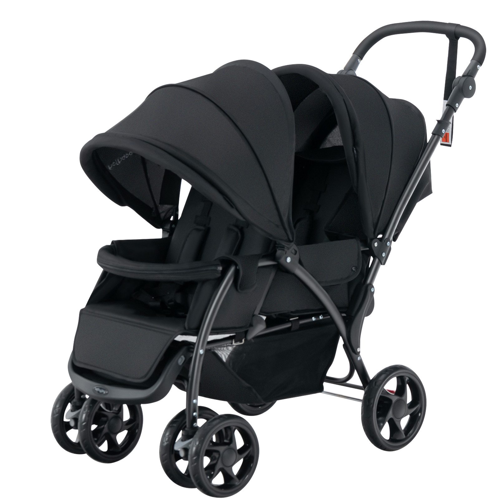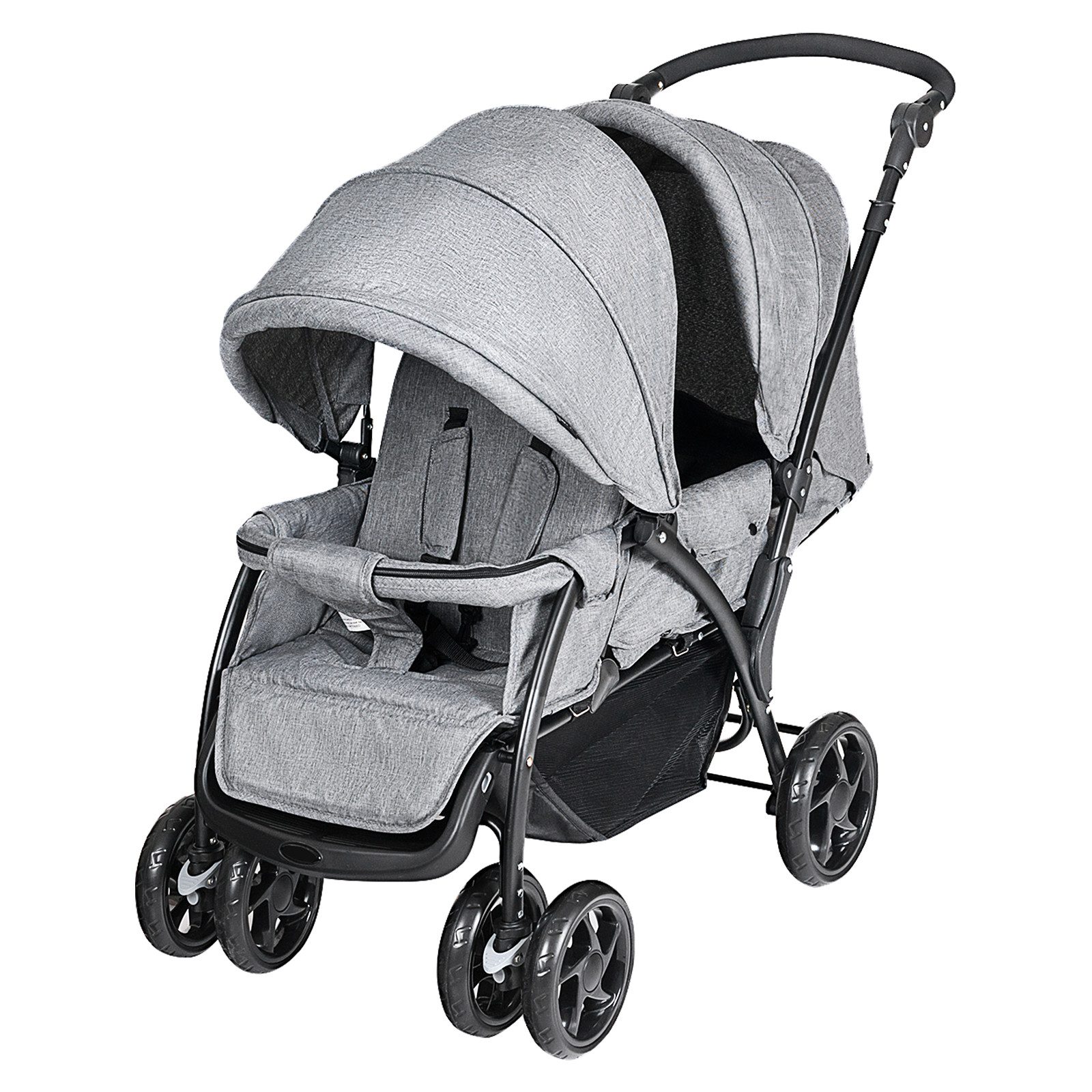 Unser komfortabler Geschwisterwagen sieht sehr schön aus und ermöglicht eine gute Sicht auf dem Rücksitz. Die 5-Punkt-Sicherheitsgurte sind mit weichen Schulterpolstern ausgestattet. Der Kinderwagen ist einfach klappbar und kann bei jedem Wetter genutzt werden. Der große Einkaufskorb unter dem Sitz bietet auch für größere Sachen, wie Taschen und Jacken viel Platz. Es ist der perfekte Begleiter für tägliche Erledigungen und auf Reisen.