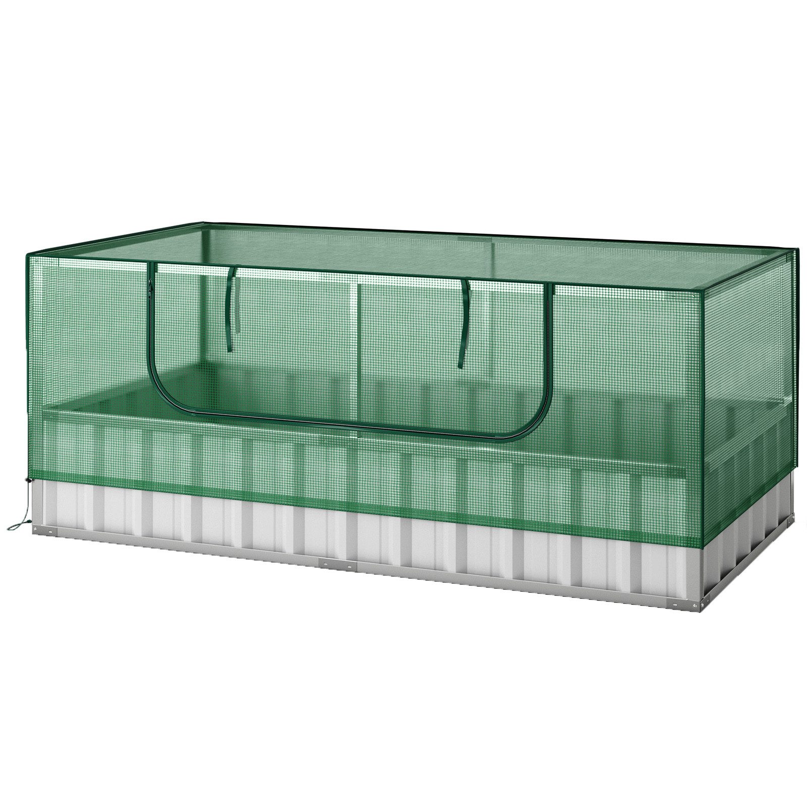 Das Hochbeet bietet ausreichend Platz für das Wachstum Ihrer Lieblingspflanzen. Mit einer hochwertigen wasserdichten PE-Abdeckung können Sie den Pflanzenertrag steigern, indem Sie sie bei wechselnden Wetterbedingungen warm und sicher halten. Es gibt eine Reißverschlusstür, die zur Belüftung und Bewässerung jederzeit aufgerollt werden kann. Und das offene Design ermöglicht eine einfache Entsorgung von überschüssigem Wasser, sodass die Pflanzen frei atmen können. Darüber hinaus bietet Ihnen die abnehmbare Abdeckung mehr Möglichkeiten, das Pflanzkasten-Set als Mini-Gewächshaus oder Hochbeet zu verwenden. Unser verzinktes Hochbeet verfügt über eine verbesserte Struktur. 2 cm dicker verzinkter Stahl ist verformungsbeständiger und rostfrei und sorgt so für eine längere Lebensdauer als Holzmaterial. Für ein gesteigertes Montageerlebnis liegt der Packung ein Paar Handschuhe bei. Außerdem werden 8 T-Tags zur bequemen Markierung angeboten.