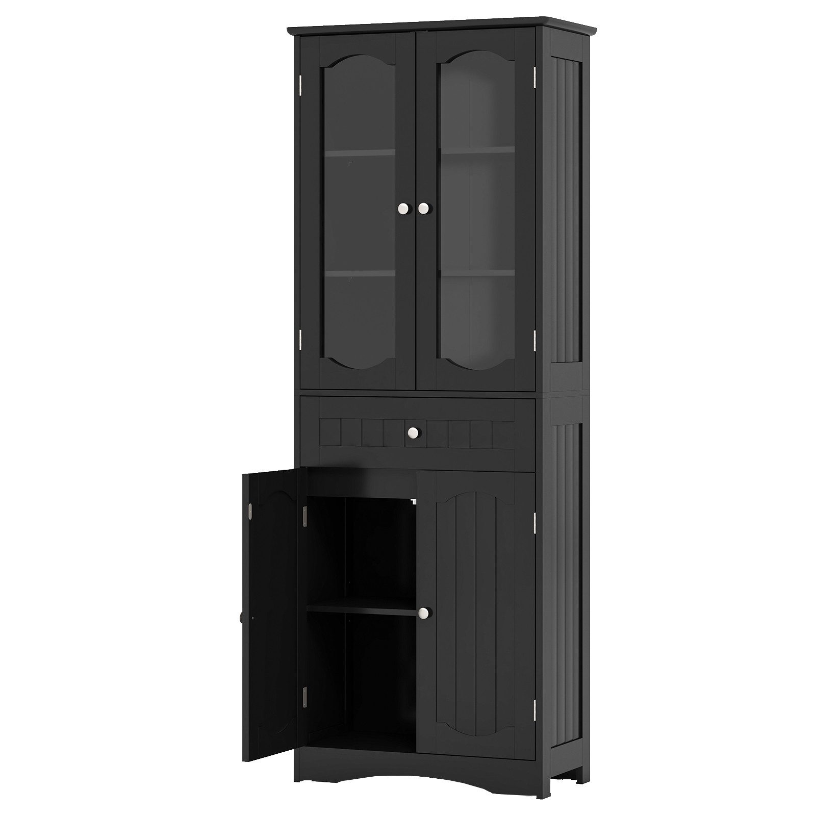Mit seinen 2 Türen aus gehärtetem Milchglas verleiht dieser Vorratsschrank Ihrem Raum Eleganz und Privatsphäre. Die 2 verstellbaren Regale bieten vielseitige Aufbewahrungsmöglichkeiten für Toilettenartikel und Handtücher. Eine große Schubladen gewährt ihnen einfachen Zugriff auf häufig verwendete Gegenstände und fördert so Effizienz und Organisation. Das Paket enthält Kippschutzvorrichtungen für zusätzliche Sicherheit, sodass der Schrank für Haushalte mit Kindern und Haustieren geeignet ist. Das stilvolle und moderne Design fügt sich nahtlos in verschiedene Einrichtungsstile ein und macht ihn zu einer vielseitigen Ergänzung für jeden Raum in Ihrem Zuhause.