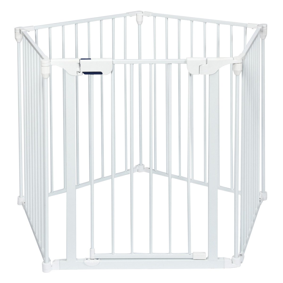 Dieser 5-teilige Metallzaun ist sehr praktisch im Alltag und kann als Gitter für den Weihnachtsbaum den Kamin oder als ein Laufstall genutzt werden. Das pulverbeschichtete Metall ist langlebig und robust. Dank des abschließbaren Designs lässt sich der Laufstall zuverlässig verwenden und in verschiedensten Formen aufbauen. Außerdem ist er auch für die Wandmontage geeignet.