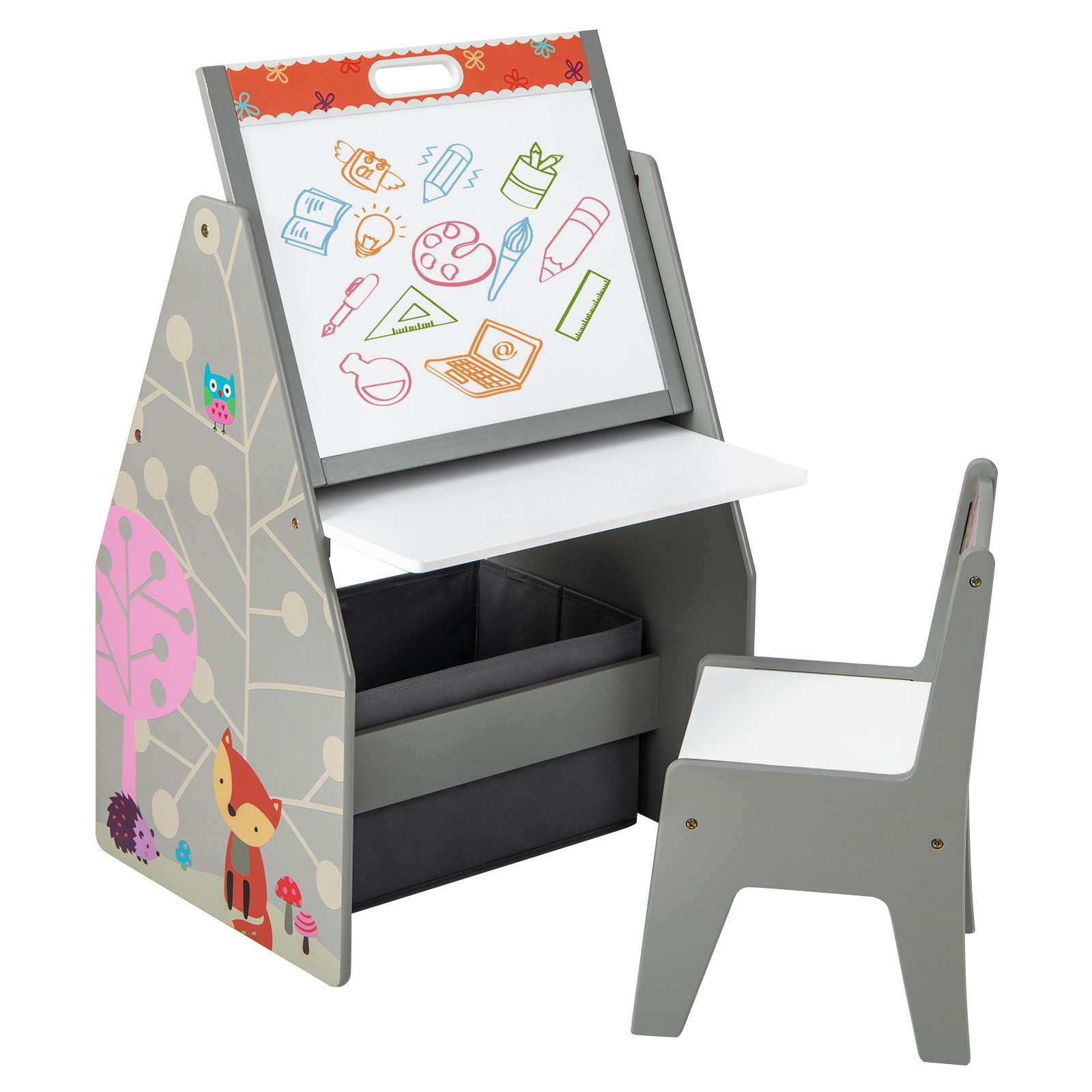Diese vielseitige Kunststaffelei kann auf verschiedene Weisen genutzt werden, um den Bedürfnissen Ihres Kindes gerecht zu werden. Sie verfügt über eine Tafel auf der einen Seite und ein Whiteboard auf der anderen, sodass Ihr Kind in verschiedenen Medien zeichnen, schreiben und ihre Kreativität präsentieren kann. Die magnetische Oberfläche sorgt für zusätzlichen Spaß, da Ihr Kind Magneten anbringen oder mit magnetischen Buchstaben und Zahlen spielen kann. Neben ihrer Funktion als Staffelei kann dieses Set in ein praktisches Tisch- und Stuhl-Set verwandelt werden und bietet einen komfortablen Raum für Aktivitäten wie Lesen, Schreiben oder einen Snack genießen. Als ob das nicht genug wäre, dient diese Kunststaffelei auch als Aufbewahrungsorganisator. Sie verfügt über ein 2-stufiges Bücherregal, auf dem Ihr Kind seine Lieblingsbücher, Kunstmaterialien oder Spielzeuge Отзывы und zugänglich machen kann. Das Set enthält auch einen Stoffkorb, der zur Aufbewahrung zusätzlicher Gegenstände verwendet werden kann und den Spielbereich ordentlich und organisiert hält.