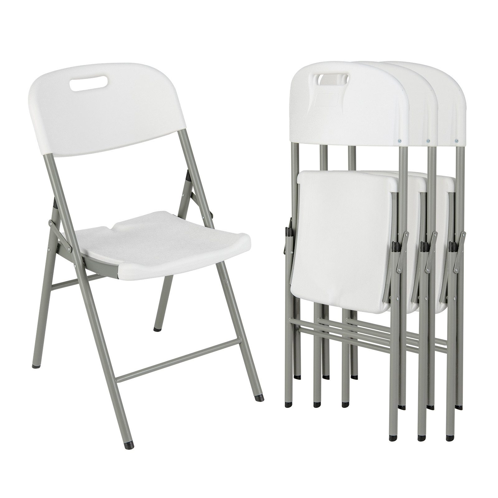 Dieses Set aus Klappstühlen bietet Komfort und Langlebigkeit und verfügt über ergonomische Rückenlehnen und konturierte Sitze, die das Gefühl beim Sitzen verbessern. Die Stühle sind mit robusten Metallrahmen ausgestattet, die bis zu 160 kg tragen können und so Stabilität und Langlebigkeit gewährleisten. Sie bestehen aus wetterfestem HDPE-Material und eignen sich für Anlässe im Freien. Außerdem haben alle Abflussrillen zum schnellen Trocknen. Ihre praktische Klappfunktion ermöglicht eine kompakte Lagerung und einen problemlosen Aufbau ohne Montage. Mit integrierten Tragegriffen eignen sich diese tragbaren Stühle perfekt für verschiedene Umgebungen, darunter Hochzeiten, Restaurants, Schulen, Konferenzräume und mehr. Впередe benutzerfreundliche Details warten darauf, von Ihnen entdeckt zu werden.