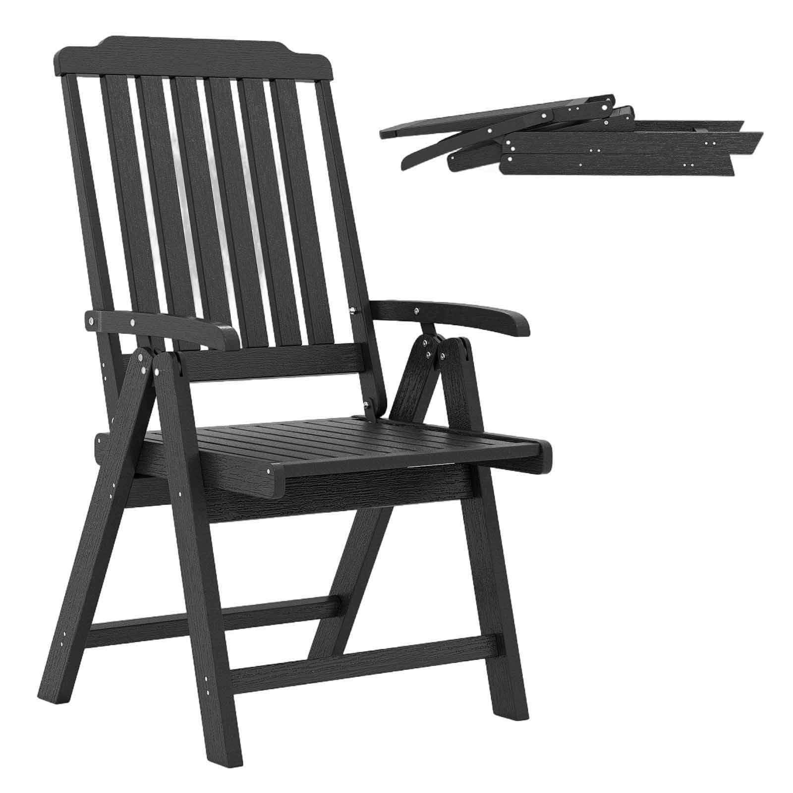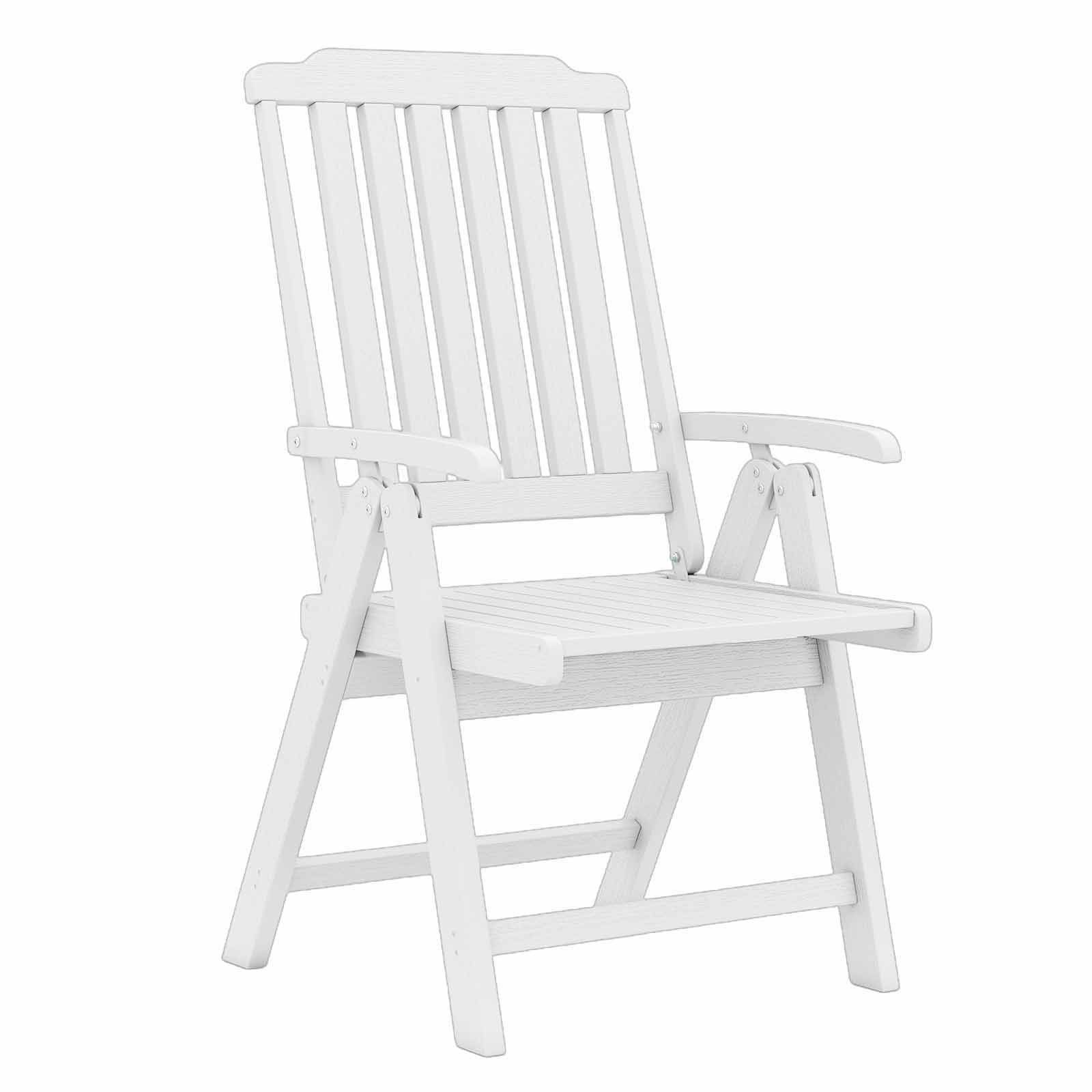 Mit den Maßen 55 x 63 x 101 cm (L x B x H) ist unser faltbarer Gartenstuhl eine vielseitige und stilvolle Sitzlösung. Bei Nichtgebrauch können Sie ihn einfach zusammenklappen, was ihn perfekt für kleine Bereiche oder eine vorübergehende Nutzung macht. Aus hochwertigem HDPE-Material und rostfreien Edelstahlschrauben gefertigt, hält dieser Stuhl allen Wetterbedingungen stand und garantiert eine lange Lebensdauer. Er ist außerdem mit breiten Armlehnen, einer ergonomisch gebogenen Rückenlehne und einer belüfteten Sitzschiene ausgestattet, so dass Sie entspannt sitzen bleiben können, egal ob Sie einen ruhigen Morgenkaffee trinken oder sich im Freien aufhalten.