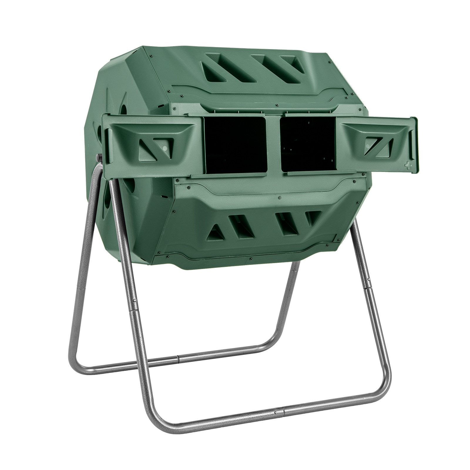 Bieten Sie eine effiziente Möglichkeit, verschiedene organische Materialien zu kompostieren! Unser rotierender Komposter verfügt über 2 Kammern mit einer großen Kapazität von 160 L, was es Ihnen ermöglicht, Ihren Kompost effizient in verschiedenen Zersetzungsstadien zu verwalten. Und 2 großen Schiebetüren ermöglichen die einen einfachen Zugang zum Beladen und Entladen. Darüber hinaus kann der Komposter um 360° gedreht werden und es gibt belüftete Löcher auf den Paneelen, die eine gründliche Durchmischung und Belüftung des Komposts ermöglichen. Hergestellt aus BPA-freiem PP-Material und mit einem rostfreien Metallrahmen versehen, ist dieser Komposter für unzählige Kompostierungsvorgänge gebaut. In 4-6 Wochen kann unser Komposter Abfälle in Dünger umwandeln.