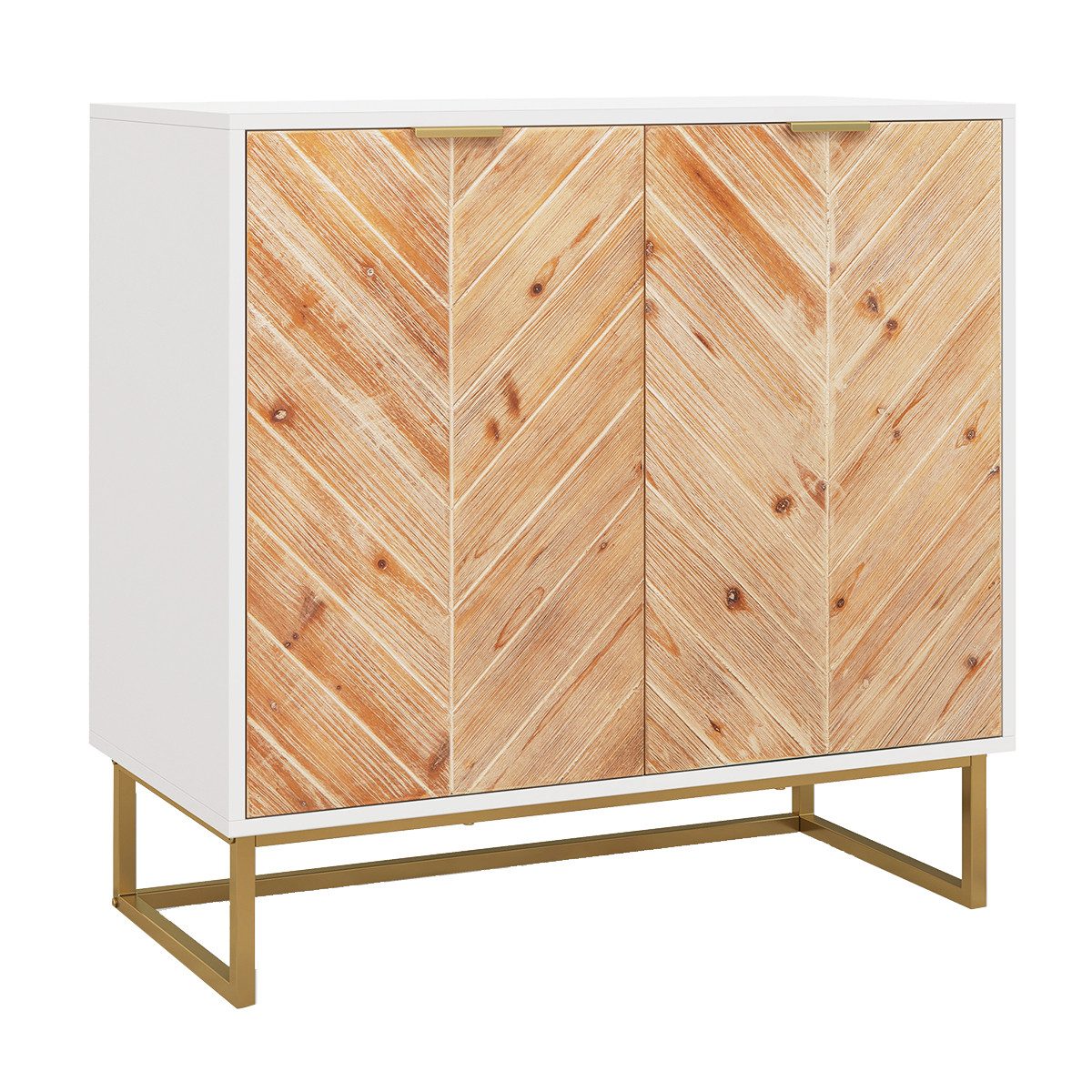 Verbessern Sie den Stauraum und Stil Ihres Zuhauses mit unserem exquisiten Buffet-Schrank! Mit einer großzügigen Tischplatte und 2 großen Innenfächern bietet er reichlich Stauraum für alle Ihre Essentials. Die Fichtenholzmaserung verleiht einen Hauch natürlicher Schönheit und bringt zeitlose Eleganz in Ihr Wohnzimmer, Esszimmer, Ihre Küche oder Ihren Eingangsbereich. Darüber hinaus sorgen die erhöhten Metallbeine nicht nur für starke Unterstützung, sondern erleichtern auch die Reinigung darunter. Fügen Sie Ihrem Raum mit diesem vielseitigen Konsolentisch einen Hauch von Eleganz hinzu.