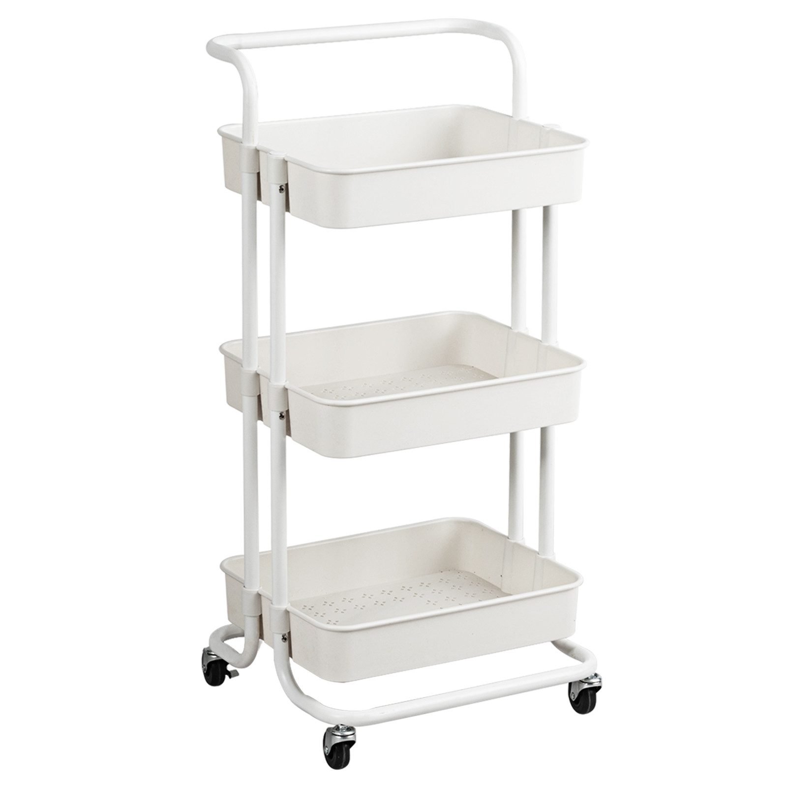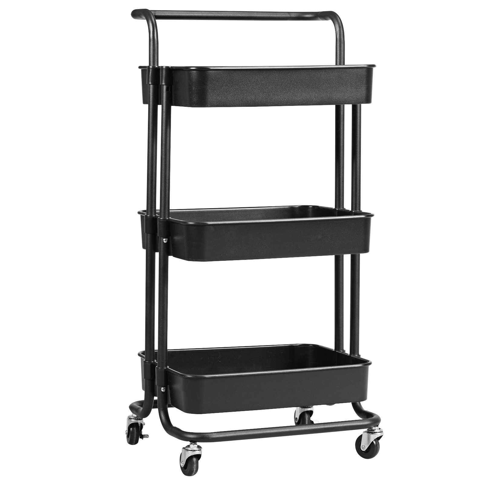 Dieser 3-Regale-Servicewagen ist eine optimale mobile Speicherlösung für kleine Räume. Die 3 großen Körbe sind mit einem hohen Rahmen versehen, sodass dieser Wagen sicheren Platz bietet. Das hochwertige Material und die aufwendige Verarbeitung sorgen für eine lange Betriebsdauer. Darüber hinaus ist der Wagen mit bis zu 20 kg pro Korb belastbar. Die 4 Premium-Rollen sorgen für mühelose Mobilität auch bei voller Beladung. Die reibungslosen Räder lassen sich leicht schieben und sind sanft zu ihrem Boden.