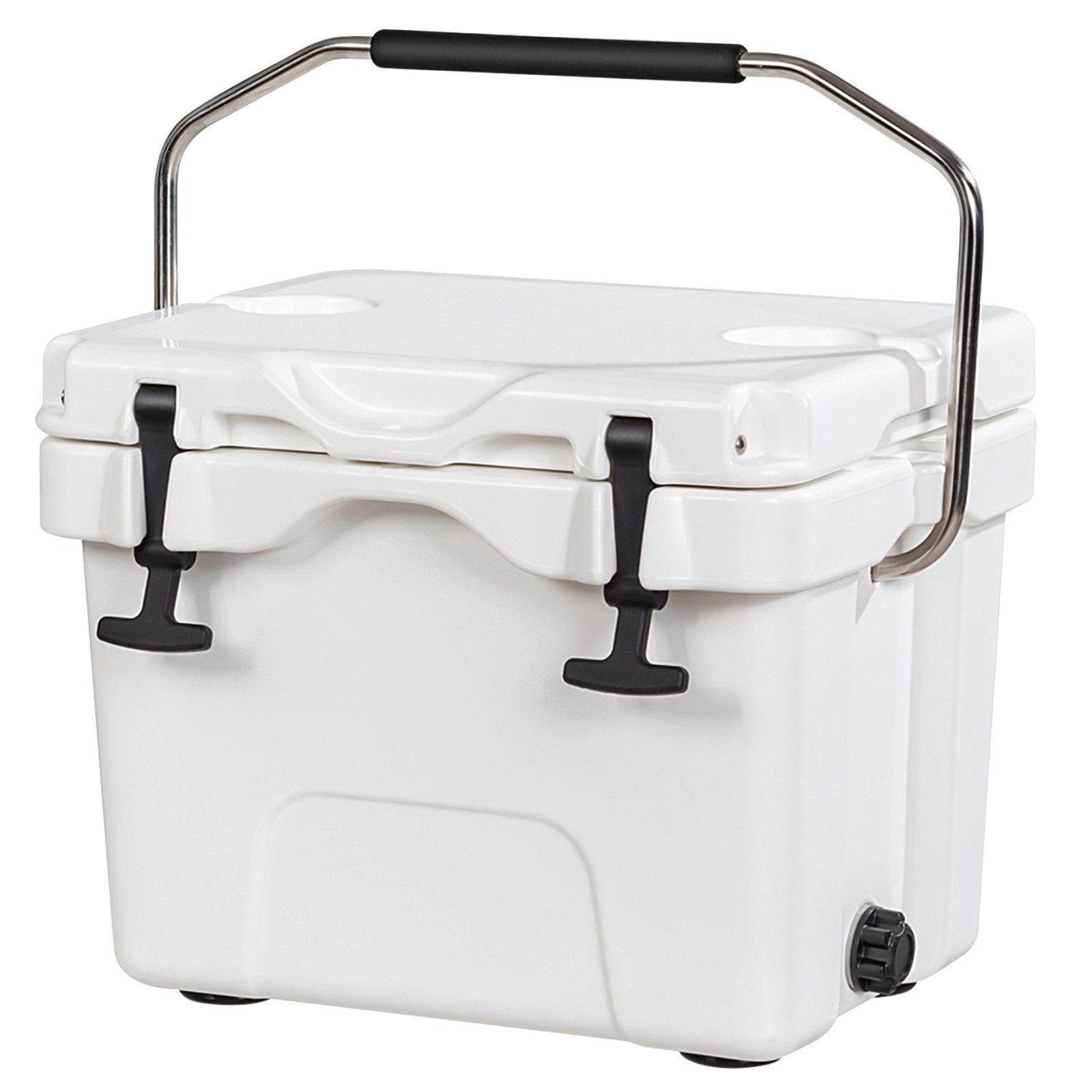 Diese Kühlbox mit perfekter Leistung und unverwüstlicher rotationsgeformter Konstruktion ist zweifellos ein guter Partner für Outdoor-Aktivitäten. Dieser Kühler mit 15L Fassungsvermögen besteht aus hochwertigen PE- und Kunstleder-Isoliermaterialien, ist ungiftig und kann Lebensmittel, Getränke und Obst 3–5 Tage lang kalt halten. Dank seines tragbaren Designs kann diese Kühltruhe in verschiedenen Situationen eingesetzt werden, z. B. bei Grillpartys, Picknicks, Angeln, Camping oder auf Reisen mit dem Auto. Und sie kann gleichermaßen zum Warmhalten von Speisen verwendet werden. Diese Kühlbox ist mit 2 Getränkehaltern, Sicherungsriegeln, abschließbarem Deckel, Edelstahlgriff, Ablassschraube und Fußpolstern ausgestattet. All diese durchdachten Details machen Sie zu einem wertvollen Hilfsmittel für den sonst unerträglich heißen Sommer.