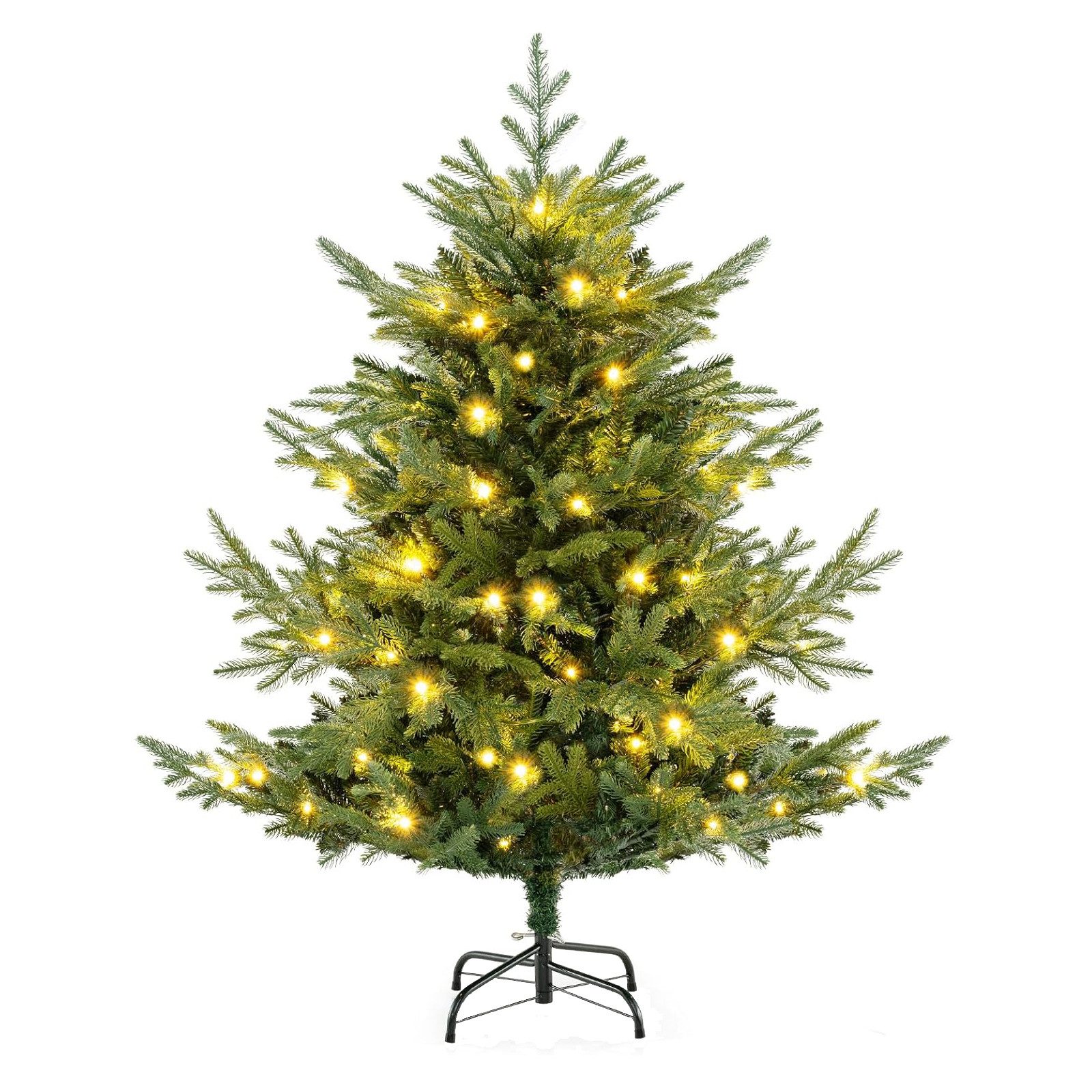 Mit 442 dichten und grünen Zweigspitzen hat der Weihnachtsbaum eine luxuriöse Körperform, die Ihre Gäste beeindrucken und die festliche Atmosphäre in Ihrem Zuhause oder Geschäft steigern wird. Der saisonale Dekorationsbaum besteht aus einer Mischung aus PE- und PVC-Materialien, ist flammhemmend und geruchslos, sodass Sie ihn sorgenfrei präsentieren können. Mit 160 warmweißen LED-Lichtern schafft der künstliche Weihnachtsbaum eine einladende Atmosphäre und ist damit das perfekte Herzstück Ihrer Weihnachtsdekoration. Darüber hinaus können Sie mit den 8 Beleuchtungsmodi die perfekte Einstellung für jeden Anlass wählen, egal ob Sie ein sanftes Leuchten oder ein lebhaftes Funkeln bevorzugen. Der klappbare Metallständer ermöglicht nicht nur eine einfache Lagerung, sondern erhöht auch die Stabilität des Baums und hält ihn sicher an seinem Platz.